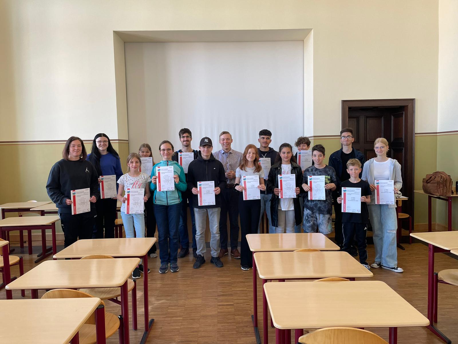 Mit 23 Schülerinnen und Schülern beteiligte sich die KGS „Herzog Ernst“ am diesjährigen Schlossparklauf. Nach zwei Jahren Coronapause durfte wieder durch den Gothaer Park rund um Schloss Friedenstein gerannt werden. Celina Will und Victoria Keksel konnten in ihren Altersklassen jeweils den 1 Platz belegen. Fadi Mahdi Roni, Mohammad Abou Aicheh, Jette Sprinz, Maja Felix, Jakob Dietz und Ludwig Langer wurden jeweils Zweite in den Altersklassenläufen. Lea Neuber platzierte sich auf Platz drei. Im hart umkämpften Schulstaffellauf belegt die Staffel der Herzog- Ernst-Schule einen hervorragenden zweiten Platz. Den Sieg holte sich das Gustav-Freitag-Gymnasium. Trotz etwas geringerer Teilnehmerzahlen als in den vorangegangenen Jahren, belegten wir Rang drei der teilnehmerstärksten Schulen und einen tollen zweiten Platz im Schulwettbewerb. Herzlichen Glückwunsch an unsere Läufer.