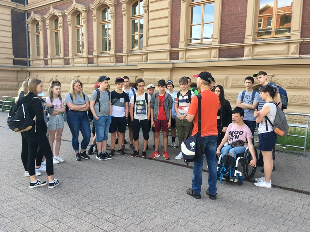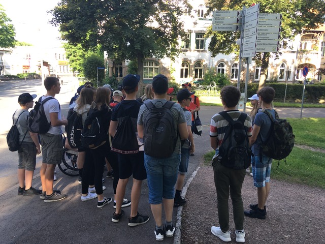 Friedrichstraße, Arnoldiplatz, Mohrenstraße, Erfurter Straße, Neumarkt, Jüdenstraße oder Hauptmarkt, dies sind nur einige Stationen auf der Erkundungstour durch Gotha am 18 Juni für Schüler der Klasse 9e unter der Leitung von Herrn Wiegand.