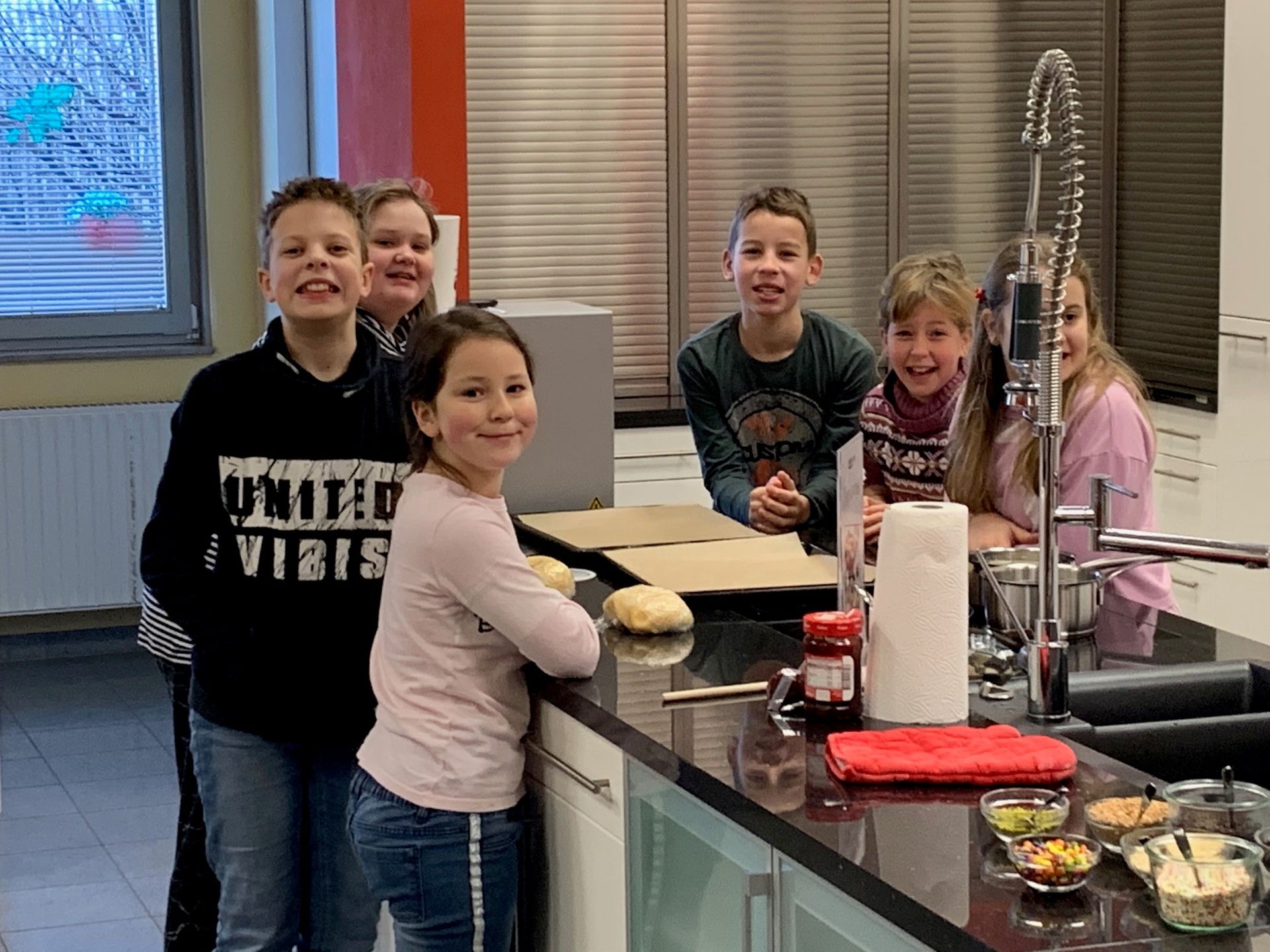 Nach ca. 20 Minuten Fahrt erreichten wir die Haltestelle in Emleben. Danach gingen wir noch ein Stück zu Fuß und kamen gut gelaunt an unserem Ziel, dem Küchenstudio Marquardt, an. Die Betreuerinnen (Victoria, Maria und Kerstin) stellten sich kurz vor und wir wurden in vier kleinere Gruppen eingeteilt. Eine Gruppe stach Plätzchen aus, die anderen formten Schneeflocken, Engelsaugen und Vanillekipferl.
