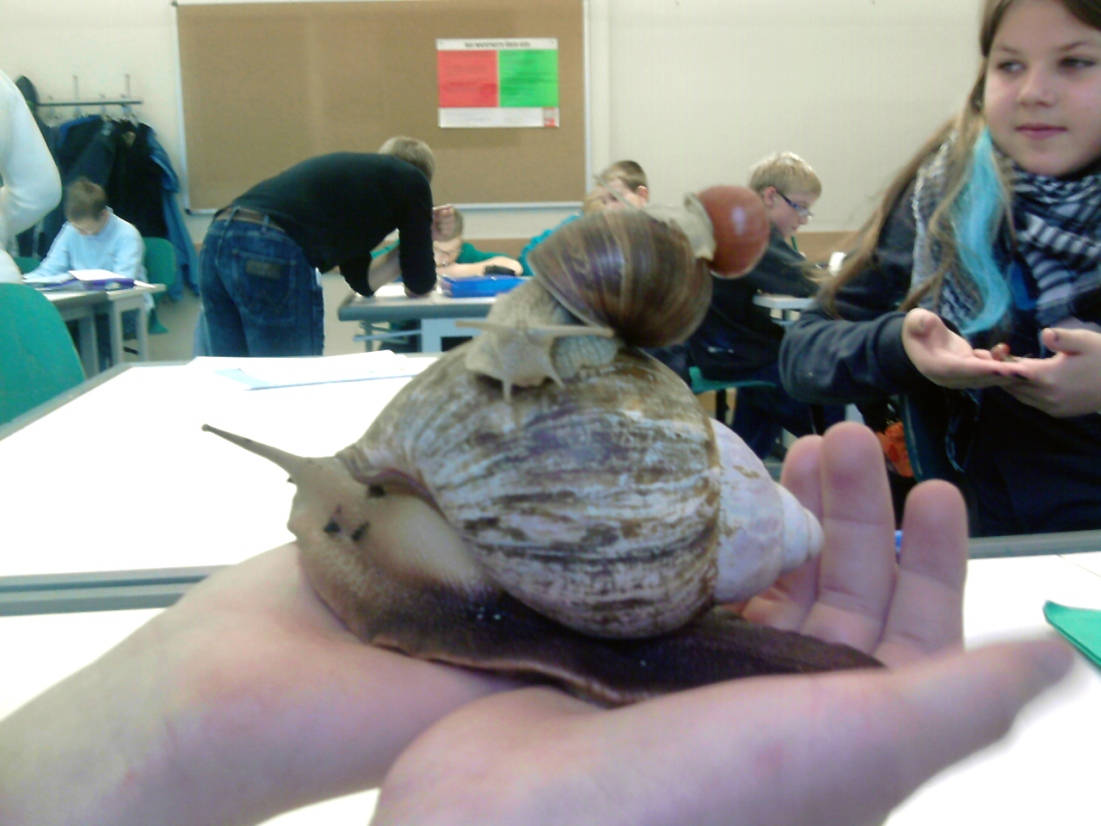 Im Biologieunterricht gefallen mir die Tiere (Regenwürmer, Schnecken, Garnelen, Stabheuschrecke, Flusskrebs u.v.m.) die der Lehrer mitbringt.