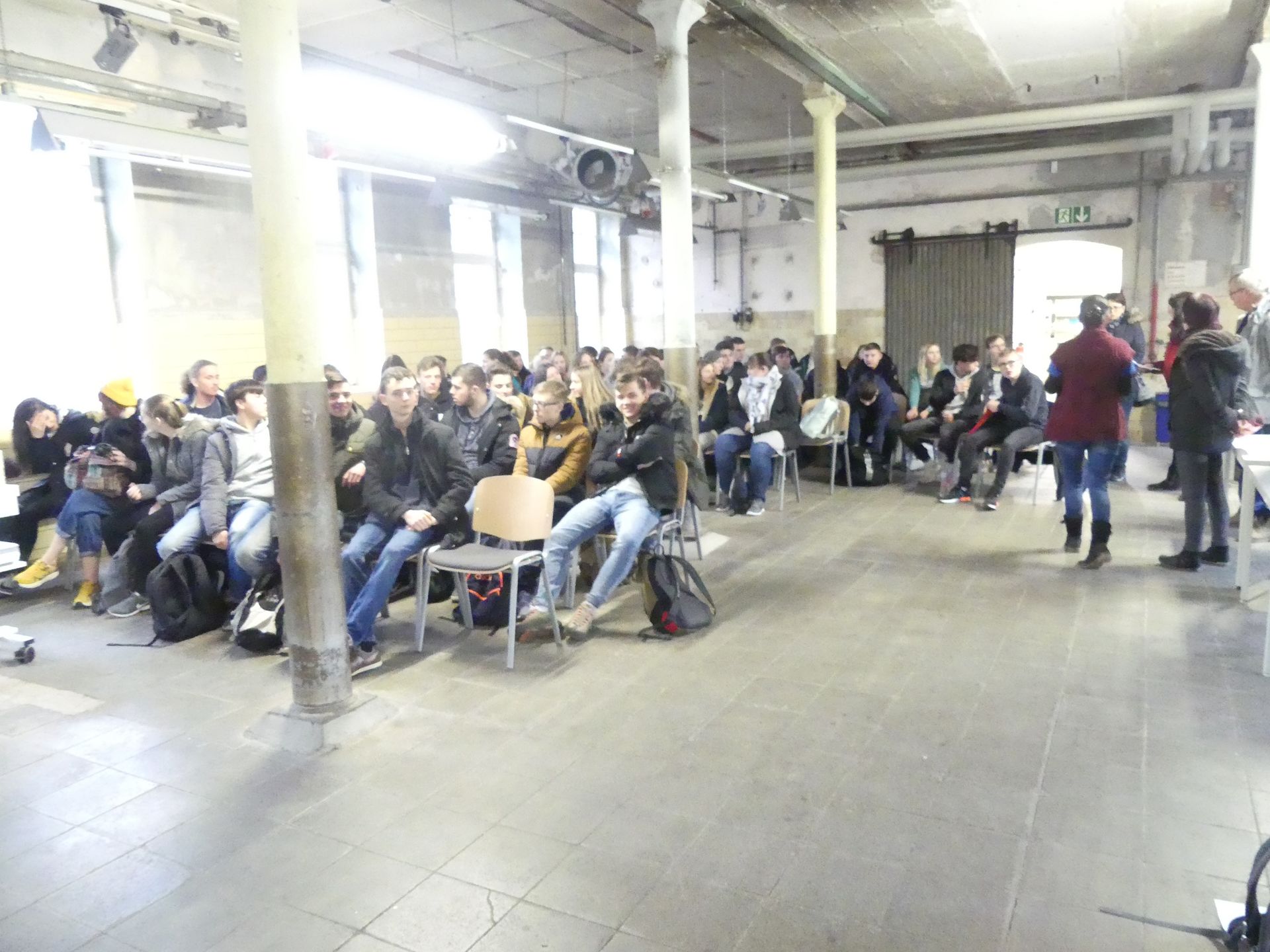 Insgesamt dauerte die Fahrt zwei Stunden. In der Tuchfabrik angekommen, wurden wir herzlich von dem netten Personal empfangen. Unsere Jahrgangsstufe wurde in 3 Gruppen aufgeteilt.