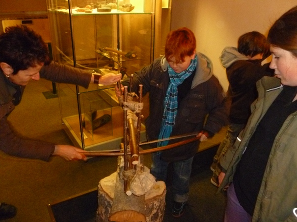 Danach wurde die Klasse in zwei Gruppen aufgeteilt. Die erste Gruppe töpferte eine Tonschale die sie anschließend mit nach Hause nehmen durfte. Die zweite Gruppe unternahm eine Führung durch die Ausstellung. Anschließend wechselten die Gruppen.