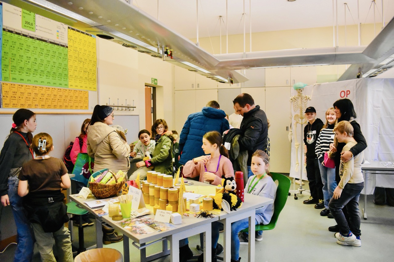 Das von den Eltern organisierte Elterncafé war ein beliebter Treffpunkt, um sich bei Kaffee und Kuchen auszutauschen. Gleichzeitig hatten die Besucher Gelegenheit, zahlreiche Arbeitsgemeinschaften (AGs) der Schule in Aktion zu erleben. Die AG "Jugend debattiert" beeindruckte mit rhetorischem Geschick, die Imker-AG präsentierte ihr Wissen über die Bienenzucht und verkaufte den Honig der letzten Saison und die Sporthelfer zeigten, wie sie für Bewegung und Teamgeist an der Schule sorgen.