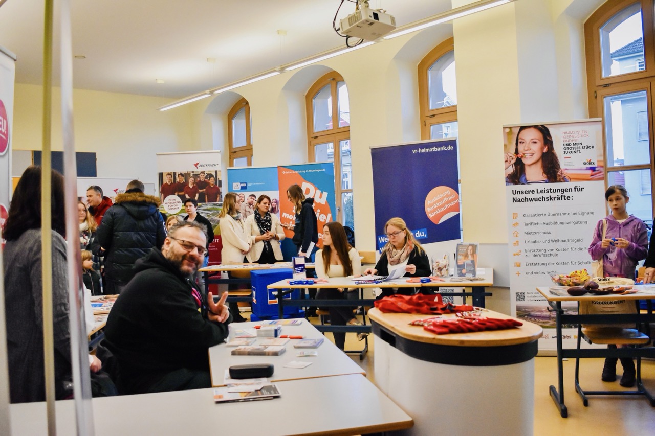In den Fachräumen für Kunst, Musik und Werken konnten sich die Gäste kreativ austoben. Dort entstanden kleine Kunstwerke, musikalische Experimente und handwerkliche Objekte, die einen lebendigen Einblick in die Arbeit dieser Fachbereiche boten. Ein weiterer Schwerpunkt des Tages war die Vorstellung der zahlreichen Kooperationspartner der Schule. Unternehmen und Institutionen aus der Region informierten über berufliche Perspektiven und Ausbildungsmöglichkeiten, die für die Schülerinnen und Schüler der Gesamtschule nach dem Abschluss infrage kommen.
