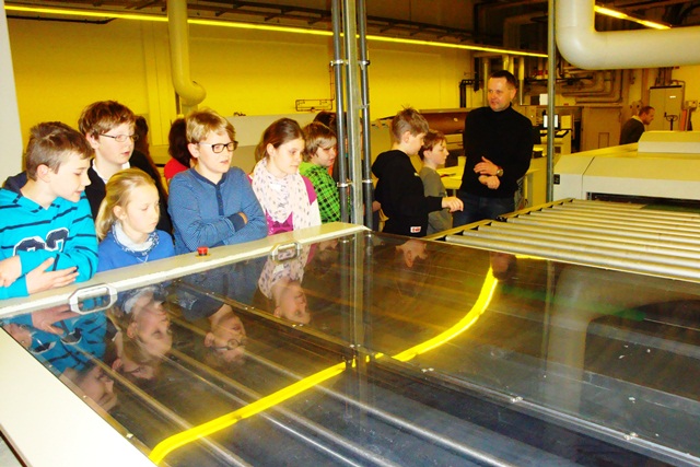 Heutzutage werden viele Dinge und Ereignisse mit Superlativen und verschiedensten Bezeichnungen hervorgehoben. Aber etwas wirklich Besonderes erlebte die Klasse 5d der KGS Herzog Ernst Gotha am 19. März – nämlich Medienkundeunterricht premium de luxe: Die Schüler genossen eine Betriebsbesichtigung bei der Gotha Druck und Verpackung GmbH im Gewerbegebiet Oberried in Günthersleben-Wechmar. Dirk Zöllich, stellvertetender Abteilungsleiter Druckvorstufe, führte gemeinsam mit seiner Mitarbeiterin Sandra Frank durch die Produktion. Beide hatten sich toll auf die Kinder eingestellt, die sich alle sehr aufgeschlossen und interessiert zeigten und viele Fragen stellten, aber auch gestellt bekamen. So errechneten die Schüler zum Beispiel, wie viele Seiten auf verschiedenen Maschinen am Tag ausgedruckt werden können. Der riesige Trockner beeindruckte die Kinder ebenso wie die dicken Papierrollen, das Zeitungskarussell oder der Stapelroboter. „Wenn ich den zu Hause hätte, könnte ich mein Zimmer noch schneller aufräumen!“, meinte Jörn Schmidt. Am Ende hatten die Kinder den Produktionsablauf von der Erstellung eines Druckerzeugnisses bis zum Endprodukt, zur Verpackung und Auslieferung live kennen gelernt. So waren auf dem Heimweg nach Gotha, der zu Fuß absolviert wurde, nicht nur die zahlreichen Rehe und Hasen auf den Feldern am Seeberg ein Gesprächsthema, sondern vor allem die vielen Eindrücke von der Betriebsbesichtigung.