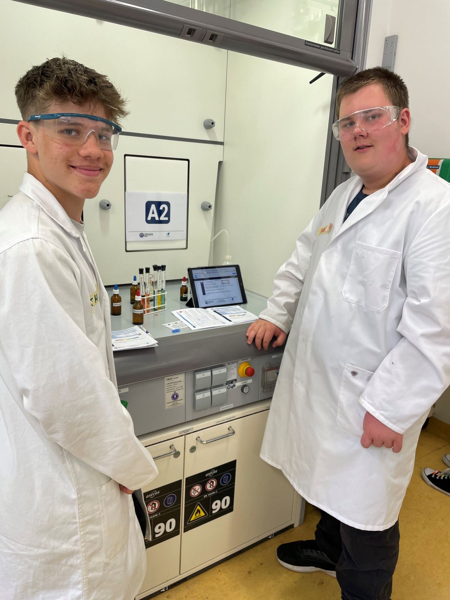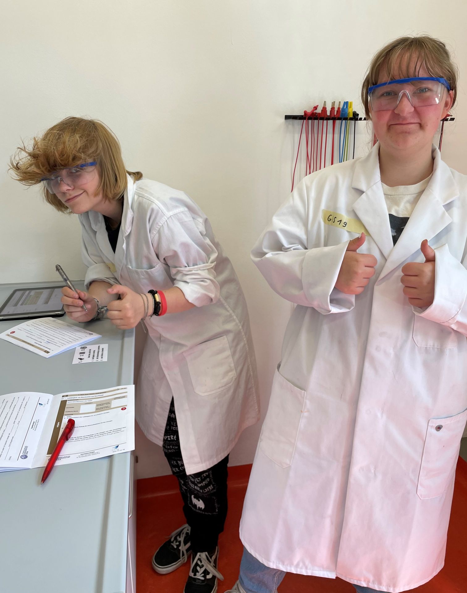 Am Freitag, dem 9.6.2023 und am Mittwoch, dem 14.6.2023 haben die Klassen 8d und 8e jeweils eine Exkursion in das Chemie-Schülerlabor nach Jena unternommen.