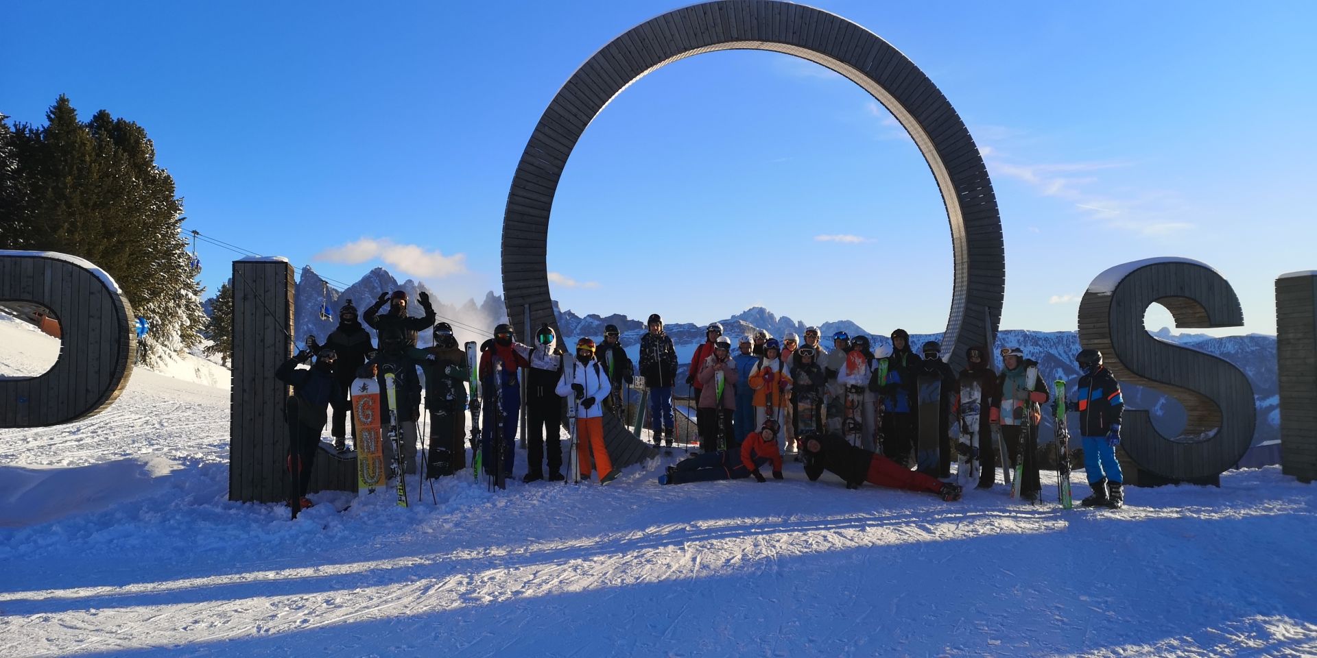 Auf ins Skilager der KGS, wir sind jetzt schon fröhlich gestimmt.