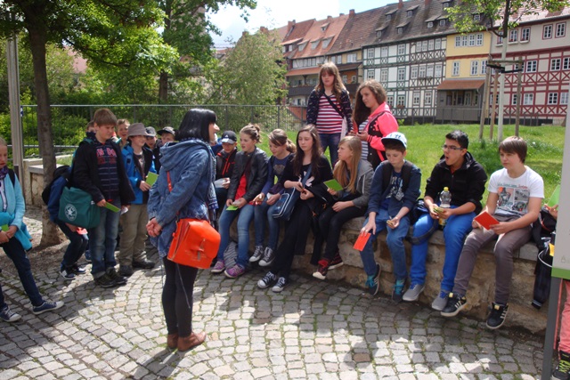 Dieser Satz spricht das Glaubensbekenntnis des jüdischen Volkes aus. Sehr viel Interessantes und Wissenswertes über diese Konfession erfuhren die Kinder des sechsten Jahrgangs der KGS Herzog Ernst Gotha während ihrer fächerübergreifenden Exkursion nach Erfurt zum Thema „Entstehung und wesentliche Aussagen der jüdischen Religion“. Viele der Regelschüler und Gymnasiasten wie z.B. Michelle Sandow aus der 6d empfanden den Besuch der Alten Synagoge als sehr eindrucksvoll. Dies bewies die Arbeitsatmosphäre dort, als die Kinder bei einem interaktiven Rundgang einen Arbeitsbogen ausfüllten, während eine gleichfalls anwesende Seniorengruppe aus den alten Bundesländern über die Disziplin staunte. Wesentlich lebhafter, aber nicht minder arbeitsintensiv ging es an den anderen beiden Lernorten zu. An der Mikwe informierte Franziska Bracharz von der Kinderstadtführung Erfurt auf humorvolle und spielerische Art über jüdisches Leben im Mittelalter und über das jüdische Tauchbad. Dieser Ort gefiel Annalena Schröder aus der 6e am besten, weil sie einen im Mauerwerk versteckten steinernen Kopf entdeckte. Javier Beato-Campano aus der 6d dagegen fand die dritte Station am interessantesten, die Kleine Synagoge. Hier beschäftigten sich die Kinder unter Anleitung von Museumspädagogin Julia Roos mit dem Aufbau einer Synagoge und dem Ablauf eines jüdischen Gottesdienstes, wobei Javier in die Rolle eines Rabbiners schlüpfen durfte. Rückblickend ist die Veranstaltung ein zwar anstrengendes, dafür aber äußerst lohnendes und nachhaltiges Angebot der Museumspädagogik der Alten Synagoge Erfurt.