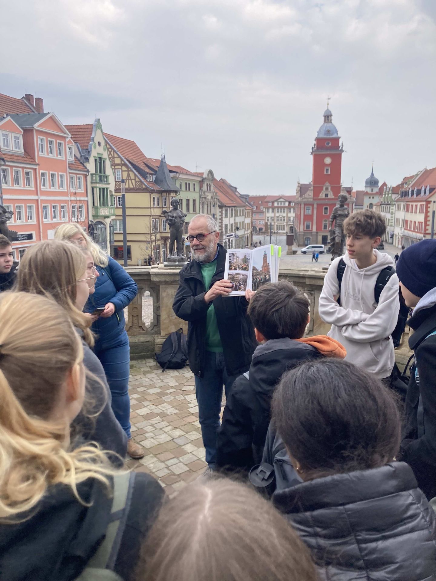 Sehr interessant, mega spannend aber auch unglaublich arbeitsintensiv fanden viele Schülerinnen und Schüler der Klasse 8e die Hör-Forscher Projekttage zum Thema „Erinnerungen“ in der Woche vor den Osterferien. Die Achtklässler begaben sich vom 20. bis 22. März auf Spurensuche zum Leben in der DDR und zur Schulgeschichte. Zusammen mit den Medienexpertinnen Franziska Klemm und Laura Gieß von der Stiftung Zuhören erarbeiteten die Schülerinnen und Schüler Interviews, befragten Zeitzeugen und bearbeiteten die erstellten Audiodateien. Herr Rudolf Nicolai erinnerte sich für die Gruppe an die Umbrüche 1989 und die Gothaer Protestbewegung zu dieser Zeit. Zusammen mit den Jugendlichen begab er sich auf eine Erinnerungstour durch Gotha von der Augustinerkirche bis hin zur ehemaligen Kreisdienststelle des Ministeriums für Staatssicherheit der DDR in der Helenenstraße. Auf dem Erinnerungsweg traf die Gruppe auf Ute und Ingo Horn, die von ihrer Enkelin Alia Bauer zum Leben in der DDR und ihren Erinnerungen an den Mauerfall befragt wurden. Auch Herr Mathias Wienecke hatte sich bereiterklärt, sich für die Achtklässler an die Geschehnisse um 1989 in Gotha zu erinnern. Sein Appell an die Gruppe: Seid mutig und mischt euch ein! Herr Breitsprecher und viele weitere Lehrerinnen und Lehrer der Schule beteiligten sich an Interviews zur Schulgeschichte. Die Suche nach Erinnerungen zur KGS führte die Gruppe auf den Dachboden der Schule, wo Herr Wiegand allerhand zur Schulgeschichte und auch das Leben in der DDR zu berichten wusste. Über den Namensträger der Schule, Herzog Ernst II., informierte sich die Klasse beim Gothaer Stadthistoriker Matthias Wenzel. Die Verarbeitung der vielen Audiodateien zu Hörprodukten wird am 16. April im Tonstudio des Wartburg-Radios in Eisenach erfolgen. Die Präsentation der fertigen Hörstücke ist zu unserem Sommerfest am 31. Mai geplant. Die Klasse 8e bedankt sich recht herzlich bei Franziska Klemm und Laura Gieß, Herrn Nicolai, Herrn Wienecke, Frau und Herrn Horn, Herrn Wenzel und Herrn Wiegand für ihre Geduld und Offenheit.