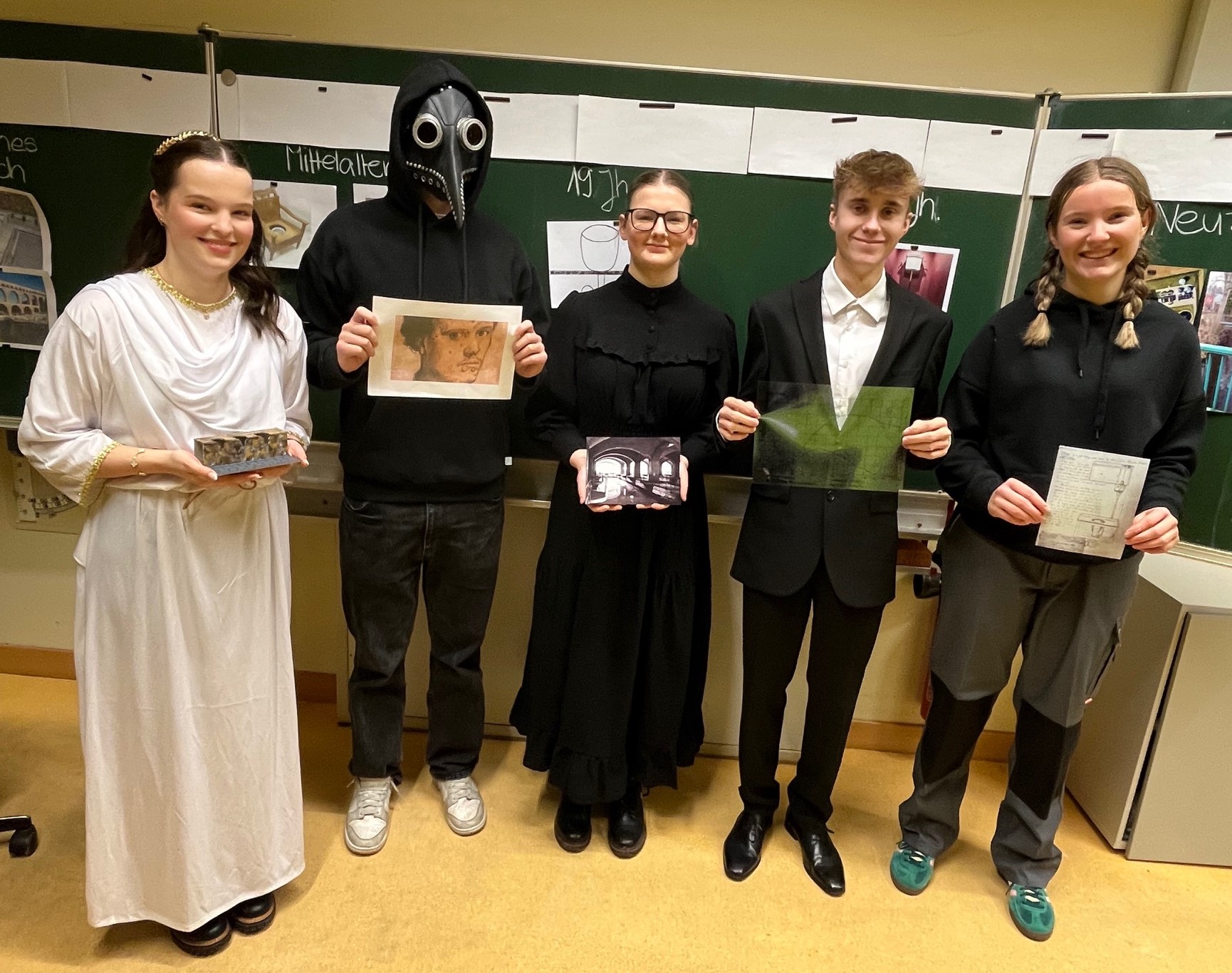 Besonders beeindruckt zeigte sich Schulleiter Klaus Breitsprecher von zwei kooperierenden Schülergruppen, die erstaunlich vielfältige Spuren der Geschichte im Schulumfeld in Form kombinierbarer Stadtrundgängen zusammengeführt hatten: „Die jungen Leute, von denen die meisten erst über die spezielle Vorbereitungsklasse 11s in die Abiturstufe gelangt sind und zum Teil noch gar nicht so lange in Deutschland leben, nehmen mich heute mit auf einen spannenden Ausflug und erklären mir die Geschichte Gothas – ich habe großen Respekt vor dieser tollen Leistung!“
