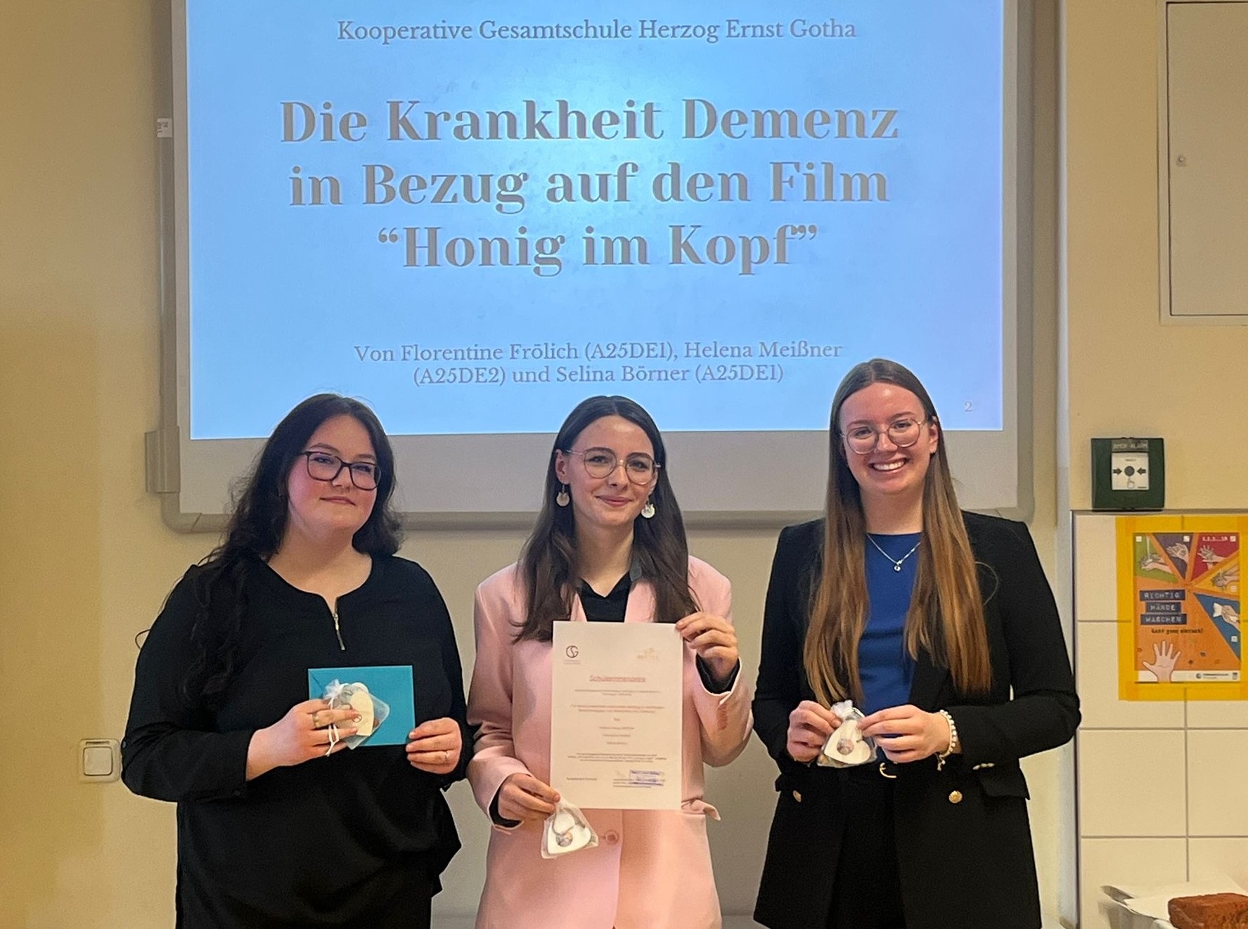 „Alarmstufe Rot im Thüringer Wald – Wie sieht der Wald der Zukunft aus?“ lautete das Seminarfachthema von Emely Fischer, Mia Preuß, Johanna Walter, das die Herzog-Ernst-Schülerinnen während der Kolloquien am vergangenen Freitag erfolgreich vorstellten. Das Engagement zahlte sich aus – die Leistung wurde mit der Höchstpunktzahl belohnt.