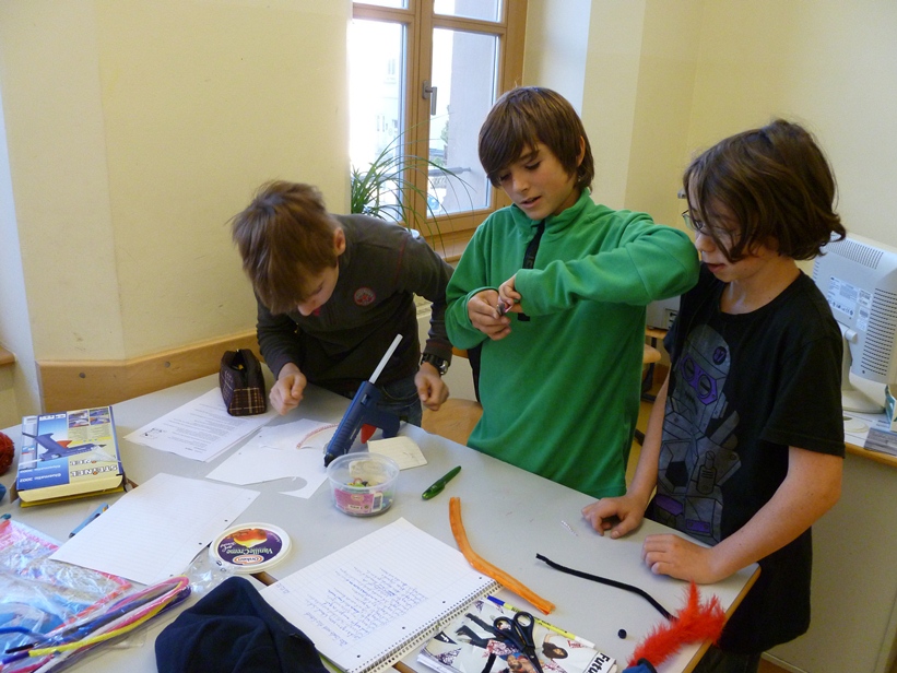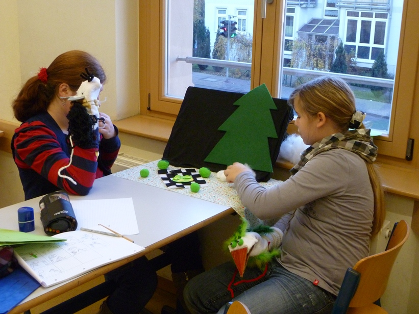 In Gruppenarbeit wurden die Fabeln analysiert, zu einem dramatischen Text umgearbeitet und die Akteure wurden gebastelt. So entstanden Löwen, Ameisen, Grillen, Störche oder Füchse als Handpuppen.