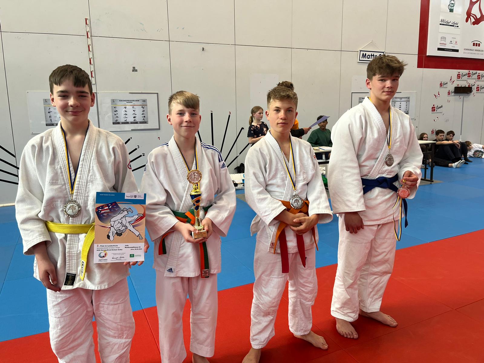 In Vorrundenkämpfen traten dabei zunächst die sechs Mannschaften der Jungen in zwei Gruppen gegeneinander an und kämpften um den Einzug ins Finale und die begehrten Medaillenplätze. Während sich in der einen Gruppe der Gastgeber, das Sportgymnasium Jena, durchsetzen konnte, dominierte in der anderen Gruppe die Kooperative Gesamtschule „Herzog Ernst“. So war das Finale des letzten Jahres auch das Finale in diesem Jahr. Durch das gute Team rund um Theo Böhnhardt, Leon Heyn, Jonah Sandow und Theisen Sandow blieb es bis zum Ende eine spannende Begegnung, bei dem sich das Sportgymnasium den Landessieg und die ersehnten Tickets für das Bundesfinale in Berlin sichern konnte.