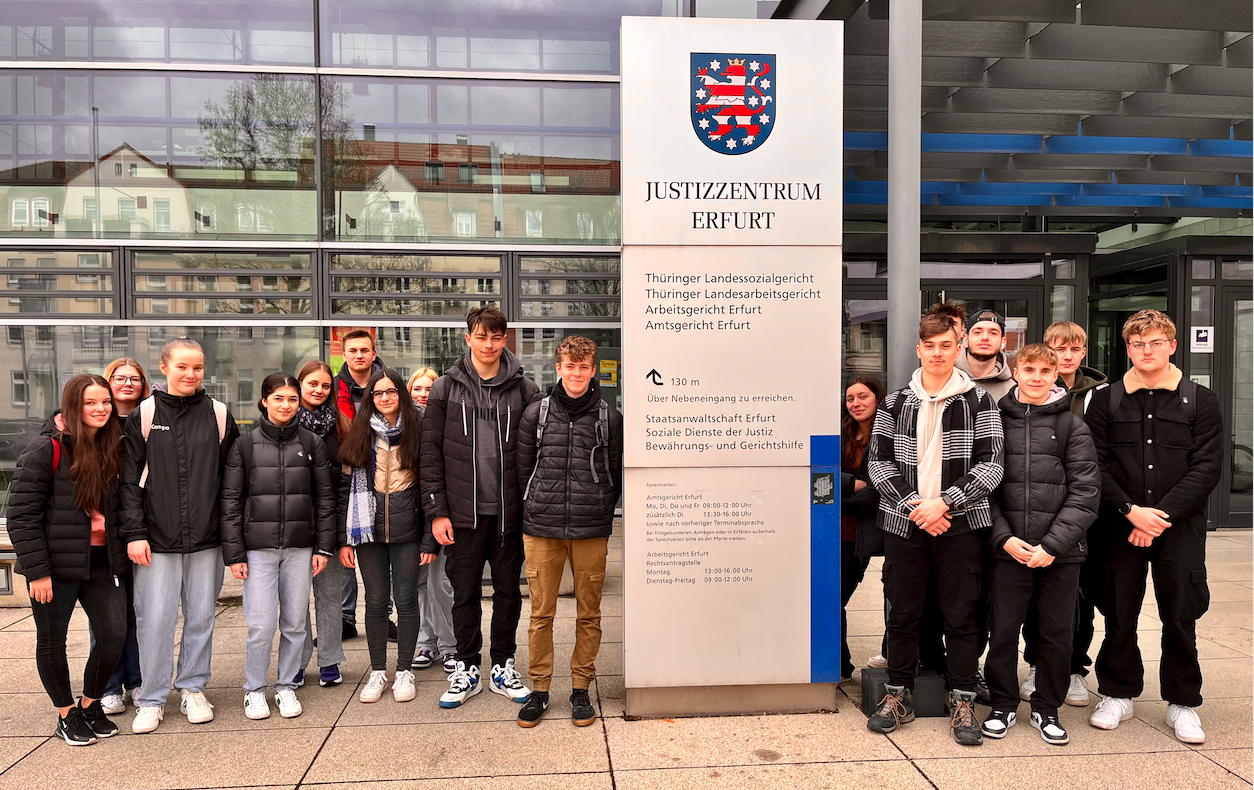 Durch eine Exkursion zum Amtsgericht in Erfurt erhielten die Schülerinnen und Schüler der Klassenstufe 10 Einblicke in Gerichtsprozesse und das Berufsfeld des Richters, des Staatsanwaltes und des Rechtsanwaltes. In einem persönlichen Gespräch konnten die Schüler zunächst mit einem Richter spannende Entscheidungen aus zurückliegenden Prozessen diskutieren, bevor sie sich dann mehrere Verhandlungen vor Ort anschauen konnten. Neben dem sachlichen Streit zwischen Staatsanwalt und Verteidiger und der schwierigen Urteilsfindung durch die Richter, erlebten die beteiligten Schüler auch, dass Gerichtsprozesse oft lange andauern können, sich Zeugen widersprechen und der ein oder andere Angeklagte seine Gerichtstermine nicht wahrnimmt und Verfahren eingestellt werden müssen. Diese nicht alltäglichen Einblicke nehmen die Schüler wieder mit nach Gotha und wollen sie in einer simulierten Gerichtsverhandlung im Unterricht nachspielen.