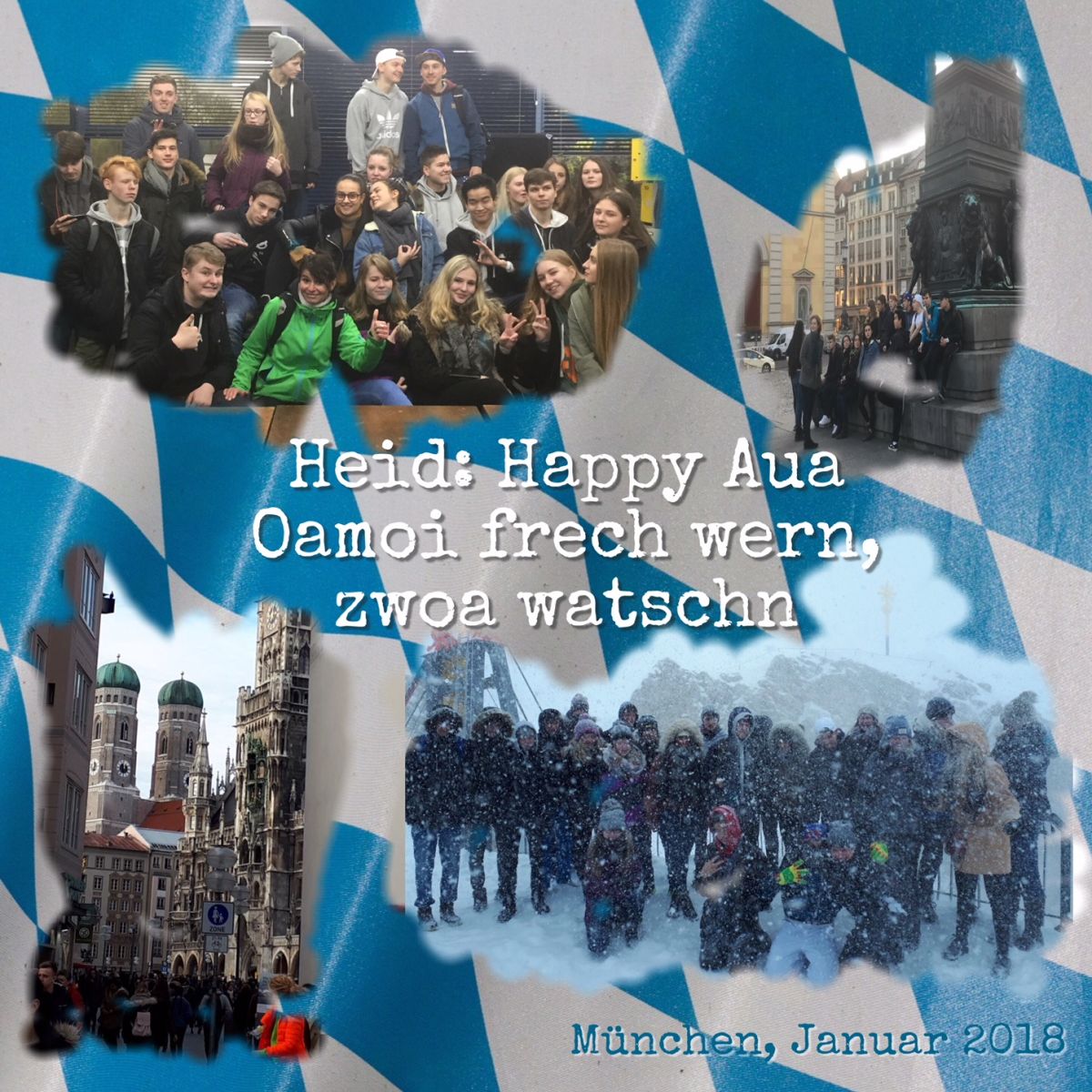 Am Montag, den 29. Januar 2018 starteten wir, die Klasse 10a, um 08: 00 mit dem Bus nach München, in die wirklich sehr schöne bayrische Hauptstadt. Nach einer äußerst vorfreudelastigen Busfahrt, kamen wir gegen 13:00 in unserem Hotel an. Nachdem wir uns ein wenig in unseren Zimmern eingerichtet hatten, ging es auch schon in die Altstadt Münchens. Dort bekamen wir einen wirklich wunderschönen Stadt-Rundgang. Zwei Damen führten uns mit Herz und Seele durch ihre geliebte Heimatstadt München. Besonders schön war, dass die beiden Guides wirklich auf uns eingingen und unsere zahlreichen Fragen gerne und mit unermüdlicher Freundlichkeit beantworteten.