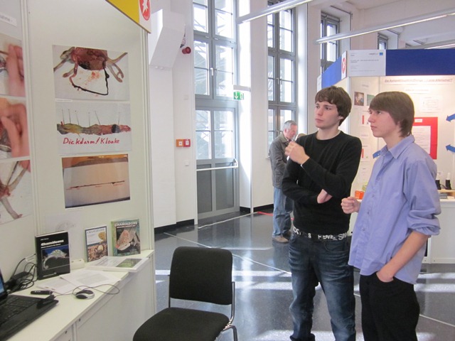 Nachdem sich Tobias Machts (A12) und Chris Machts (7d) im Regionalfinale durch Siege in ihren Kategorien qualifizieren konnten, nahmen sie 22. und 23. März 2012 unter dem Motto „Uns gefällt was Du im Kopf hast“ am Landesfinale des Thüringer Landeswettbewerbs „Jugend forscht“ in der Fachhochschule Jena teil. Insgesamt hatten sich 102 Jugendliche mit 51 Projektarbeiten für das Landesfinale qualifiziert. Mit seiner Arbeit über Chamäleons gewann Tobias den 2. Platz in der Kategorie Biologie und den Sonderpreis Forschung. Chris erreichte im Wettbewerb der Arbeitswelten mit seiner Erforschung des Brandverhaltens einiger Kinderzimmergegenstände den 3. Platz. Herzlichen Glückwunsch!