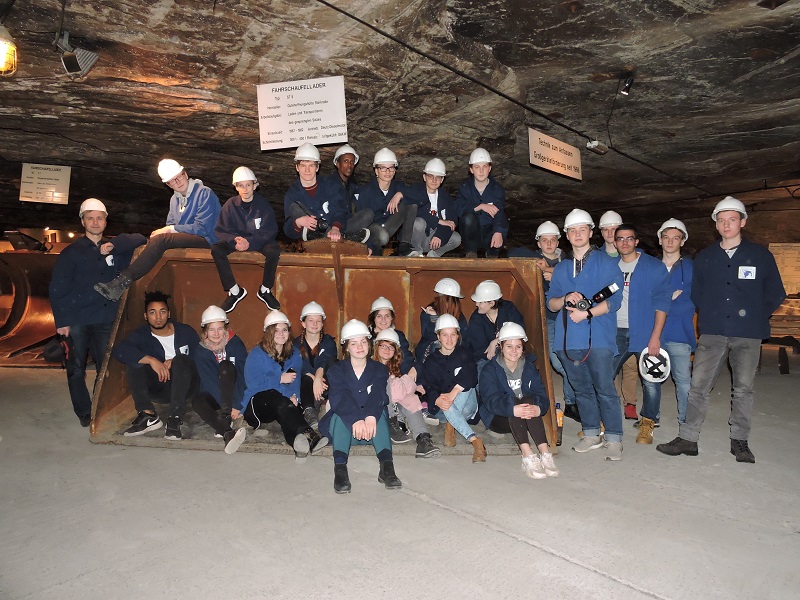 Tief hinab in die Erde ging es in der letzten Schulwoche vor den Ferien für die 10d der KGS Herzog Ernst, um den Gipfel des Erfolgs zu genießen: Im Schuljahr 2016/17 hatten die Schüler beim Nichtraucherwettbewerb „Be smart – Don’t start“ eine Exkursion ins Kalibergwerk Merkers gewonnen. Dieser Preis wurde nun eingelöst. Bergmann Rainer Leser nahm die jungen Leute mit auf eine vielfältige Reise in die Geschichte der Erde und die Welt der Gegenwart. Wie entstand Salz? Wozu wird es genutzt? Wie wird es gewonnen? Was geschieht mit dem Abraum? … Die Kristallgrotte wurde bestaunt und Bergbautechnik untersucht. Die freiwilligen Feuerwehrleute unter den Schülern konnten sich mit Leser über Brandschutzfragen austauschen. Historisch wurde es im Goldraum, wo bei Kriegsende die gesamten Gold- und Devisenbestände der Reichsbank und Kunstwerke von unermesslichem Wert eingelagert waren. Großen Eindruck machte die Lasershow im Großbunker, den meisten Spaß die Fahrt auf dem LKW. Mit Schwung geht es also ins neue Jahr. Und dass sich die Klasse auch dieses Jahr wieder bei „Be smart“ beteiligt, steht außer Frage.