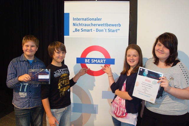 Ein Gutschein für den Besuch der Imaginata in Jena für die ganze Klasse! Simon Becher, Michael Burgard, Marie Schitky und Anne Steinborn aus der Klasse 6d der KGS Herzog Ernst posteten die schöne Nachricht über die tolle Auszeichnung gleich nach der Preisverleihung an ihre Mitschüler. Vertreter von insgesamt 17 Thüringer Schulklassen konnten sich in diesem Jahr über einen attraktiven Preis bei einem besonderen bundesweiten Schülerwettbewerb freuen, der in unserem Bundesland von der Landesvereinigung für Gesundheitsförderung Thüringen e.V. betreut wird. „Be smart – Don’t start“ ist das Motto des jährlichen, nun schon zum siebzehnten Mal stattfindenden Wettbewerbs für rauchfreie Schulklassen. Dieser richtet sich vor allem an Klassen, in denen noch nicht geraucht wird oder nur wenige Schülerinnen und Schüler rauchen. Er soll Schülerinnen und Schülern ein Anreiz geben, gar nicht erst mit dem Rauchen anzufangen. Dies fiel den Mädchen und Jungen der 6d nicht schwer. Die Kinder beließen es aber nicht nur bei Umsetzung ihrer Verpflichtung, nicht zu rauchen, sondern sie erarbeiteten auch einen praktischen Beitrag zum Wettbewerb. Eine Lesepatenschaft der DAK Gesundheit Regionalzentrum Erfurt sorgt dafür, dass die Schule täglich je eine Ausgabe der TA und der TLZ erhält. Auf dieser Grundlage sammelten die Schüler alle Artikel über das Rauchen im Wettbewerbszeitraum, fassten deren Inhalte zusammen und setzten sich mit den dort formulierten Aussagen auseinander – mit Erfolg und einem tollen Preis. Im Herbst beginnt eine neue Runde des Wettbewerbs und sicher ist die künftige 7d wieder dabei.