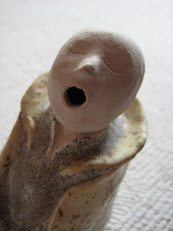 Für den Kopf eine Kugel formen, diese dann mit den Fingern wieder so verstreichen, dass sie am Körper fest ist. Der Mund muss richtig groß werden.