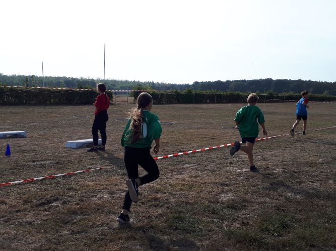 Nach einer allgemeinen Begrüßung und dem einheitlichen Einkleiden unserer Schüler ging es ans Einteilen in Gruppen. Ein Schüler-Team, das aus zehn Schülern unserer Schule bestand, bereitete sich auf den Biathlon von. Hier musste in Paaren gelaufen, gesprungen, geworfen und gefangen werden. Durch unsere gute Vorbereitung konnten wir hier als zweite Mannschaft über die Ziellinie laufen. Das andere Team (die anderen zehn Kids unserer Schule) konnten bei der Fun-Disziplin „Wassertragen“ ihr Können unter Beweis stellen. Wenn nicht ein „Umkipper“ dafür gesorgt hätte, dass die KGS-Kids den Rasen wässern, hätten wir hier gewinnen können. Schade… Dann wurde gewechselt: Die Biathleten gingen zum spaßigeren Teil des Wettkampfes über und das Wasser-Team stellte nun die Läufer für den Cross-Lauf. Es musste 1,6 km über die Pferderennbahn gelaufen werden, quasi über Stock und Stein. Auch hier schlugen wir uns in den beiden Durchgängen gut.