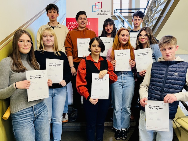 Seit über zwanzig Jahren fördert „Jugend debattiert" sprachliche und politische Bildung sowie Meinungs- und Persönlichkeitsbildung. In den letzten drei Jahren gehört es nun auch zu den festen Arbeitsgemeinschaften an unserer Schule und der damit verbundene Schulwettbewerb auch zu den festen Terminen im neuen Kalenderjahr.