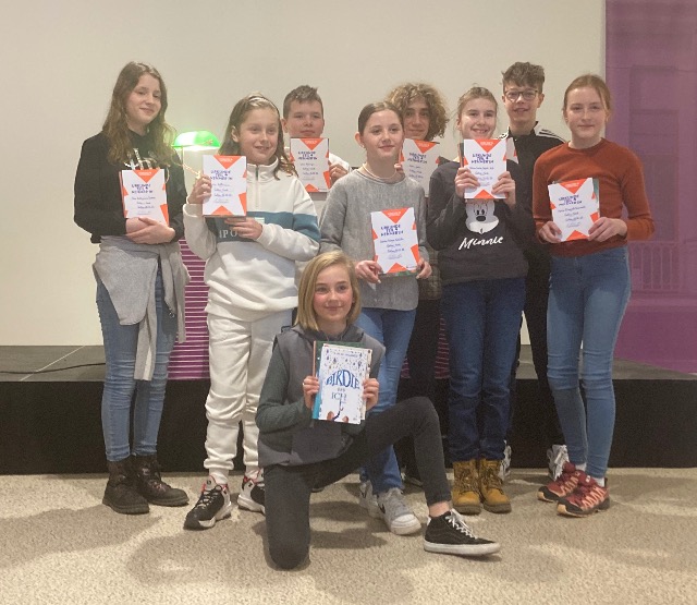 Sichtlich überwältigt, aber mit einem strahlenden Lächeln betrat Marlene Bechmann aus der 6c für die Siegerehrung die Bühne der Stadtbibliothek Gotha. Sie setzte sich am 23.02.2023 gegen acht weitere Schulsiegerinnen und Schulsieger aus Gothaer Schulen und Umgebung in der zweiten Runde des Vorlesewettbewerbs durch. Gleich zweifach überzeugte sie die Jury mit ihrer Lesekompetenz. Zunächst las Marlene eine Teststelle aus dem selbstgewählten Buch „Die Stille meiner Worte“ von Ava Reed vor. Anschließend begeisterte sie das Publikum auch beim Vorlesen eines Fremdtextes, der von Mitarbeitenden der Heinrich-Heine-Bibliothek ausgewählt wurde. Als Siegerin des Kreisentscheides wird Marlene unsere Schule nun in der nächsten Runde des Vorlesewettbewerbs vertreten.