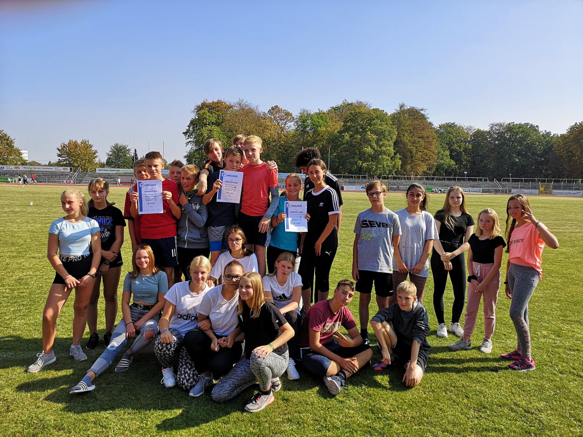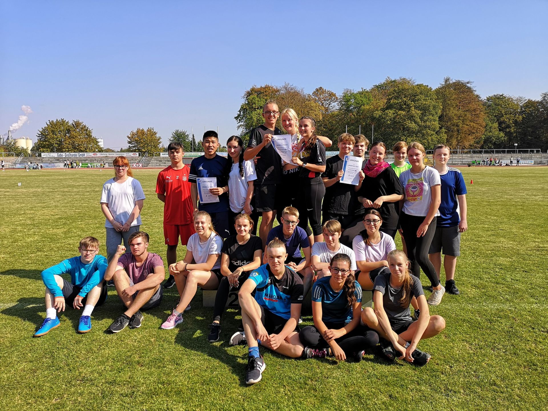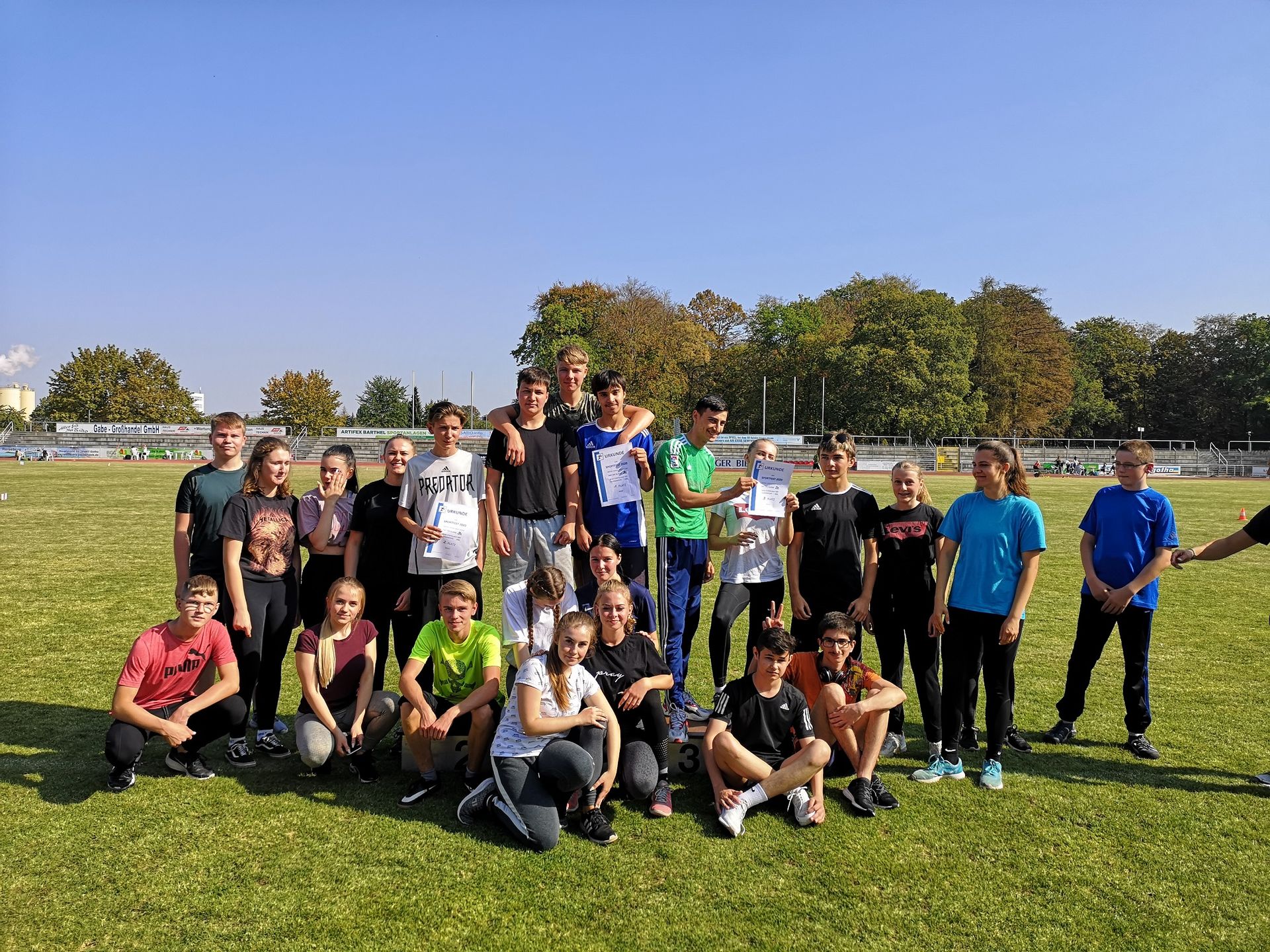 Getreu nach dem Motto „Sport (macht) frei“ fand unser diesjähriges Sportfest im Volksparkstadion unter wolkenfreien Himmel mit zahlreichen Sporttalenten statt. In den Disziplinen Wurf, Sprung und Sprint konnten alle Schüler der KGS Bestleistungen erzielen – der eine mehr, der andere mit (etwas) Luft nach oben. Aber jetzt habt ihr wieder ein Jahr Zeit, eure kleinen Blessuren zu kurieren und eure leichtathletischen Sportqualitäten weiter zu verbessern, um im nächsten Jahr neu anzugreifen. Vielleicht auch mit eurer Klassenstaffel, um am Ende auf das Siegertreppchen bzw. Siegerfoto zu gelangen.