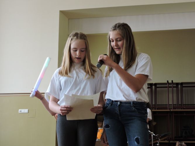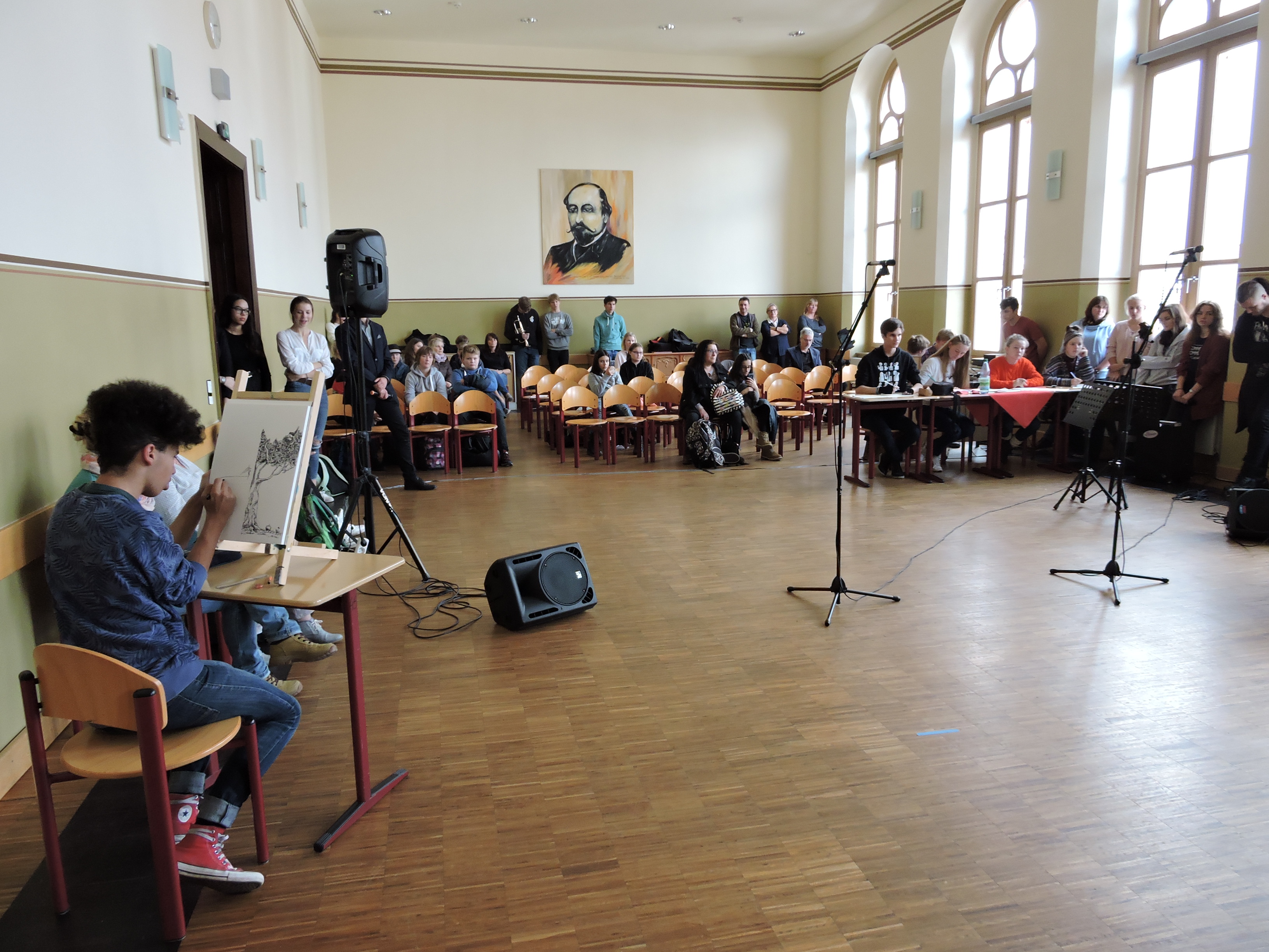 Eine sehr schöne Tradition ist der jährliche Talentewettstreit unserer Schule. Kinder und Jugendliche aller Jahrgänge stellen ihren Mitschülerinnen und Mitschülern ihre kreativen Begabungen in vielfältigen künstlerischen Bereichen vor und werden auch aus deren Reihen bewertet. Die Jury hatte es auch in diesem Jahr nicht leicht - eigentlich hätten alle Akteure, wie z.B. Publikumsliebling Robby Jung oder Rapper Tony Kopp oder ... einen Preis verdient.