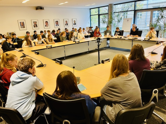 Schüler diskutieren im Thüringer Landtag über die Politik vor Ort und das aktuelle Weltgeschehen.