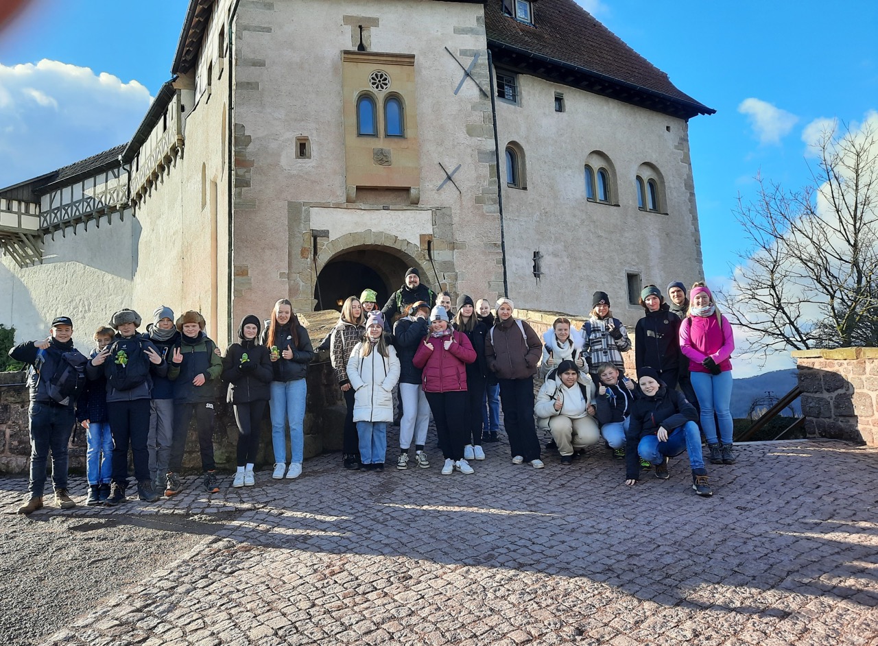 Mit etwa 120 Getreuen sind wir an diesem Tag trotz klirrender Kälte und beschwerlichem Aufstieg in die Burg eingefallen. Ohne Widerstand und Verluste konnten wir das geschichtsträchtige Gelände kurzzeitig erobern. Hier gab es neben der großartigen Aussicht auf die Stadt Eisenach viel zu entdecken und vor allem viel Wissenswertes zu erfahren.