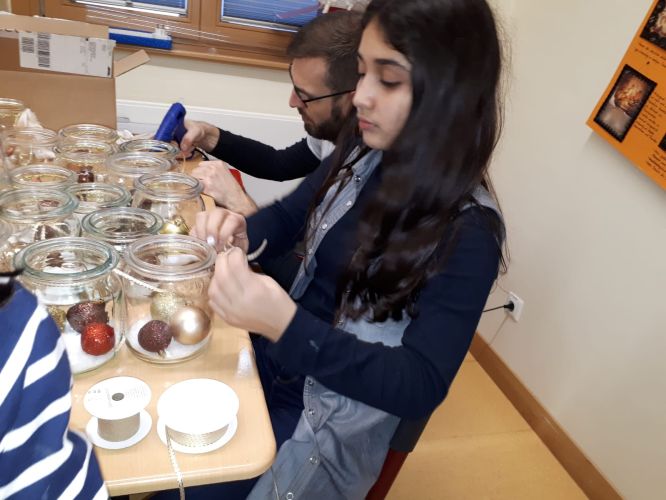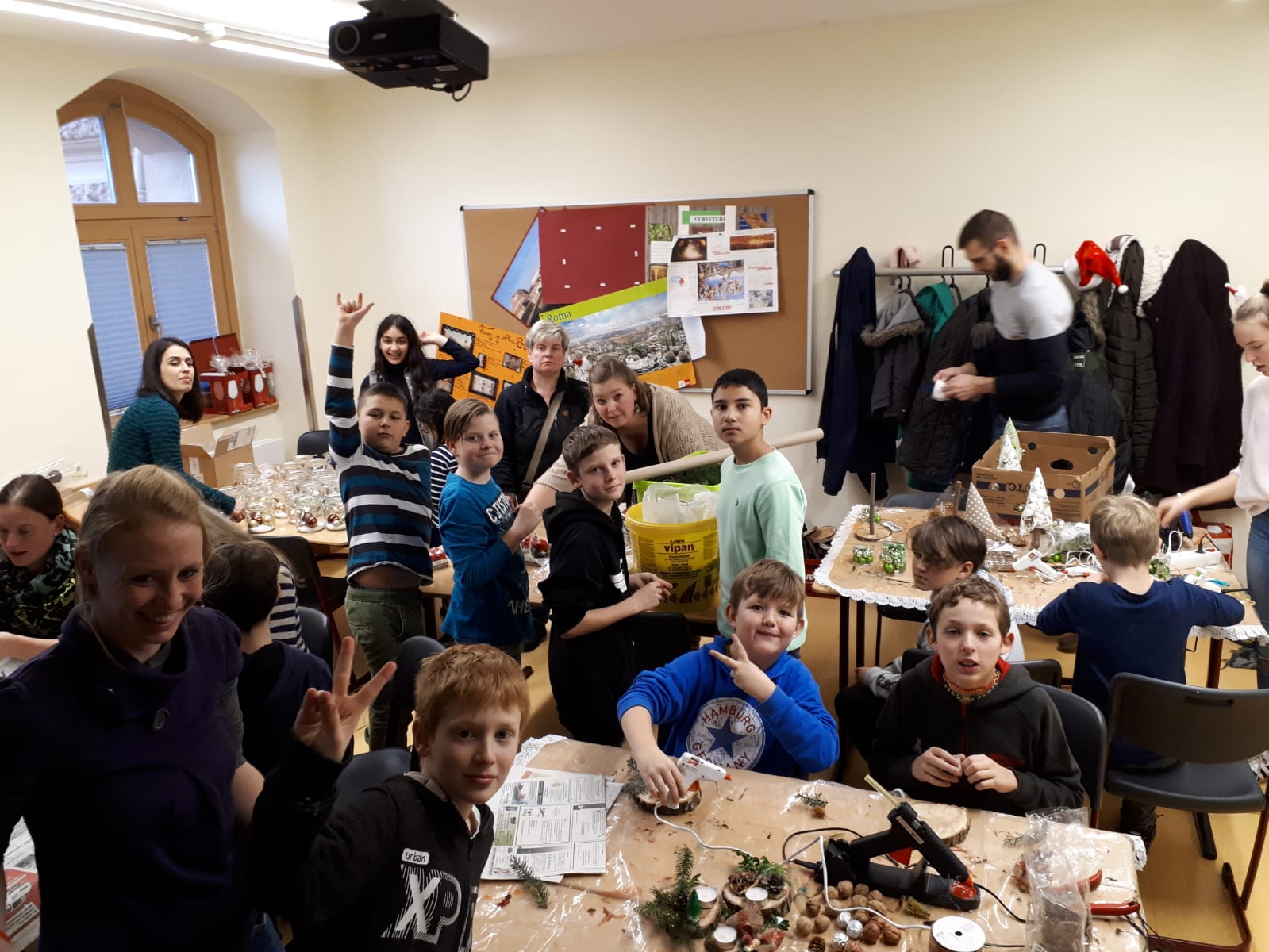 Am 03.12.2018 veranstaltete die Klasse 5a ihre diesjährige Weihnachtsfeier. Wir Schüler konnten an verschiedenen Stationen basteln und backen. Frau Wipprich, Frau Creutzburg, Frau Schröder und Annalena Schröder haben mit uns Weihnachtsbäume aus Stoff, Weihnachtsdeko in verschiedenen Gläsern, Engelchen und Weihnachtssterne gebastelt.
