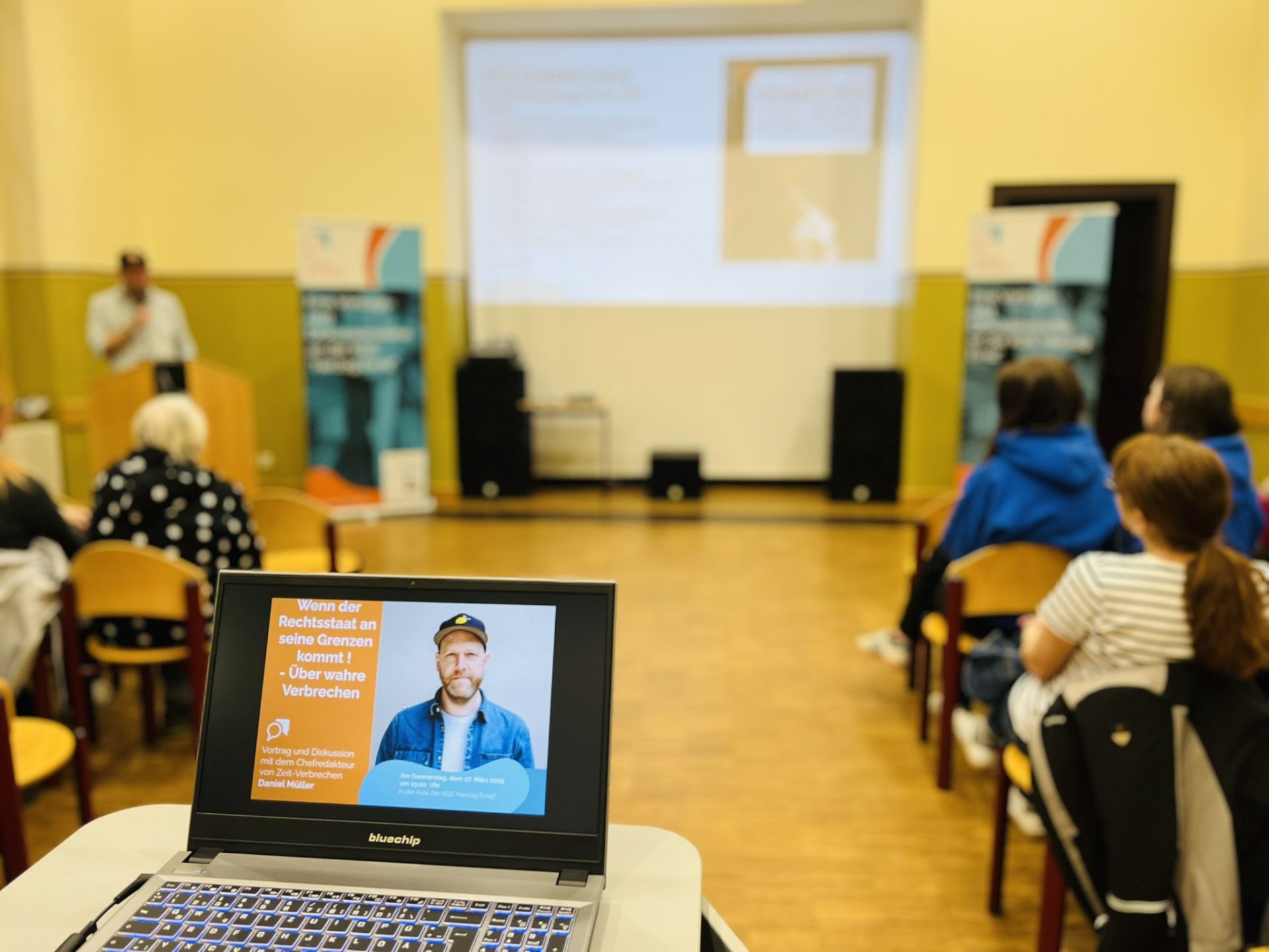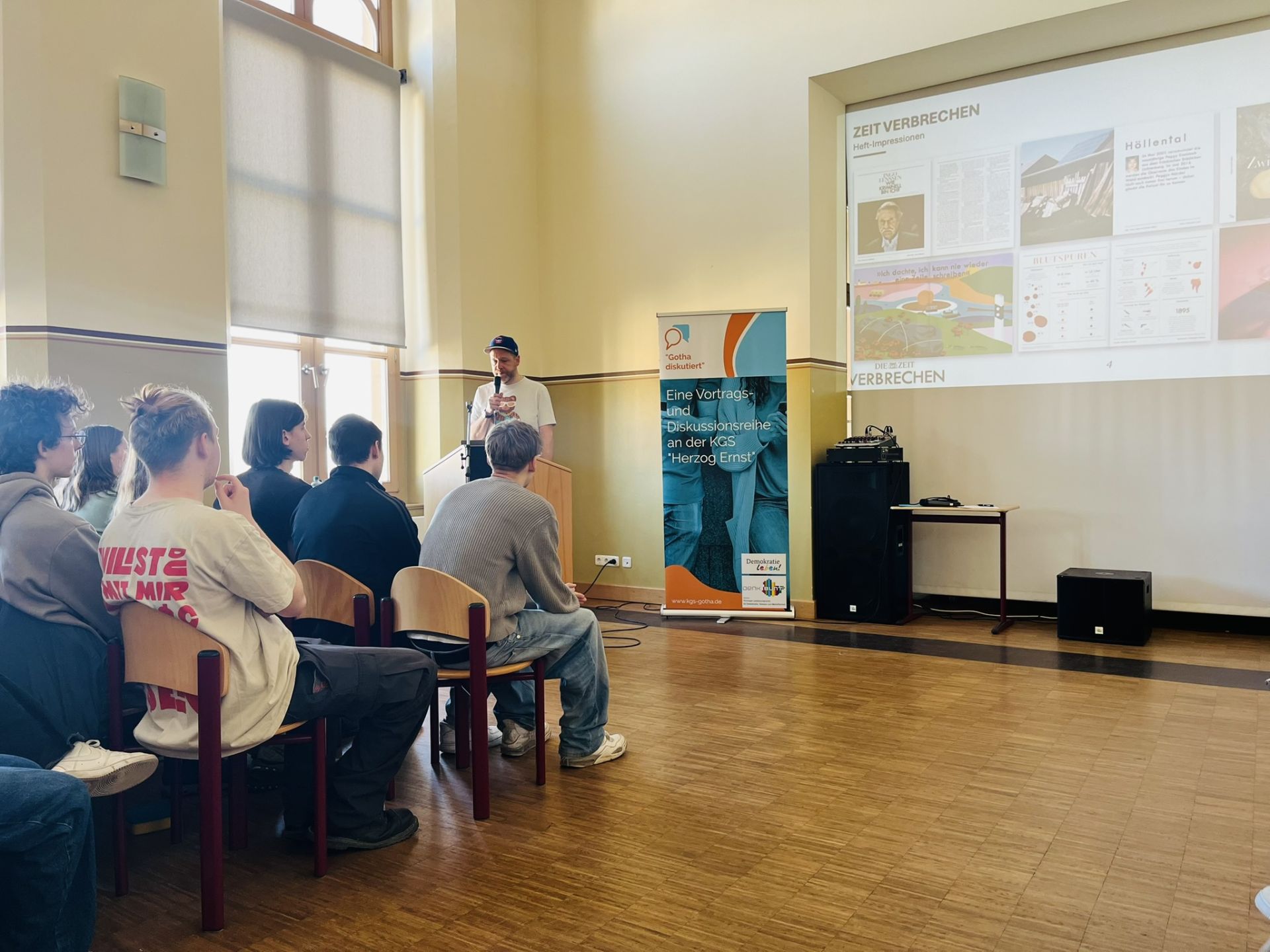 Kurz vor den Osterferien freute sich die Kooperative Gesamtschule „Herzog Ernst“ über einen besonderen Gast: Daniel Müller, Chefredakteur des renommierten True-Crime-Magazins ZEIT Verbrechen, war zu Gast, um mit Schülerinnen und Schülern der Klassenstufen 10 und 12 über die Schattenseiten unserer Gesellschaft und die Grenzen des Rechtsstaats zu sprechen. Unter dem Titel „Wenn der Rechtsstaat an seine Grenzen kommt – Über wahre Verbrechen“ berichtete er in der Reihe „Gotha diskutiert“ von besonders eindrucksvollen Fällen, die ihn in den letzten Jahren als Journalist beschäftigt haben.