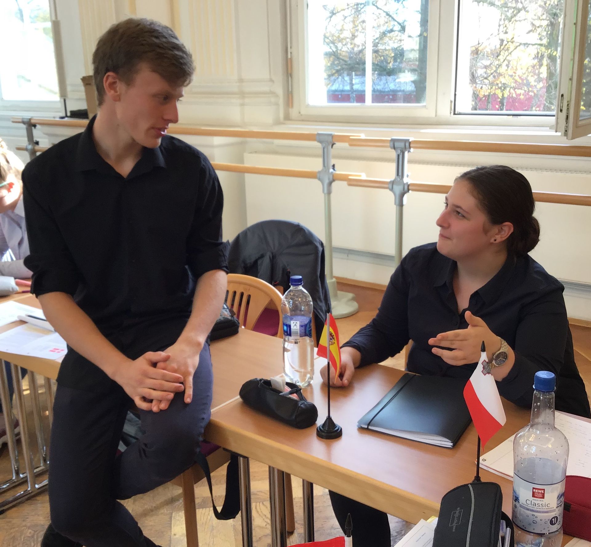 Als Staats- und Regierungschefs der EU-Mitgliedstaaten debattierten die Schülerinnen und Schüler der Klasse 11S bei einem Krisengipfeltreffen über einen gerechten Verteilungsschlüssel der Europäischen Mitgliedsstaaten und über die Sicherung der EU-Außengrenzen. Bereits in den ersten Redebeiträgen der Schüler wurde deutlich, dass einige Nationalstaaten Probleme und Herausforderungen im eigenen Land befürchten. Andere Politiker legten Wert auf die humanitäre Seite der Asyl- und Flüchtlingsproblematik, welche aus ihrer Sicht nicht außer Acht gelassen werden dürfe. Menschen aus anderen Ländern zu helfen, die vor Krieg, Gewalt oder Unterdrückung in ihrer Heimat geflüchtet sind, ergibt sich aus den Prinzipien und Fundamenten der Europäischen Union. In den Kurzreden der Regierungschefs und der anschließenden Debatte wurden die großen Spannungsfelder der europäischen Politik und der nationalen Interessen deutlich. Einige Staaten, wie Ungarn und Polen verweigerten im Planspiel jegliche Kooperation und die Solidarität mit südeuropäischen Staaten. Andere Redner wollten die Probleme in den Herkunftsländern bekämpfen und ein weiterer Teil der Mitgliedsstaaten sahen in der Migration eine Bereicherung. In den Entscheidungen des Gipfeltreffens machten die Schülerinnen und Schüler deutlich, dass die bisherige Politik der Europäischen Union den aktuellen Entwicklungen nicht mehr gerecht wird. In ihrer Erklärung verabschiedeten sich die Staats- und Regierungschefs von der bisherigen „Dublin-Verordnung“ und einigten sich auf einen Verteilungsschlüssel, welcher für alle bindend ist. Dieser Schritt verlangte von einigen Staaten große Zugeständnisse, sodass manche Mitglieder der Europäischen Union in ihren Pressestatements von einer Niederlage sprechen mussten.