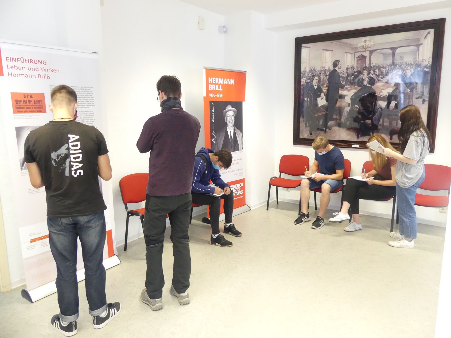 Wenn ihr auch mehr über Hermann Brill erfahren wollt – die Ausstellung ist noch bis November im Tivoli zu sehen und kann mit der Klasse oder auch privat besucht werden. Zudem erstellen gerade eure Mitschüler Jonas Fischer, Merlin Rau und Maximilian Sauer eine Seminarfacharbeit zu bedeutenden Persönlichkeiten unserer Schule – Menschen mit demokratischen oder extremistischen Positionen, die für die Thüringer und für die deutsche Geschichte bzw. aktuelle Politik eine bedeutende Rolle spielten bzw. spielen. Bei den Erstgenannten darf Hermann Brill nicht fehlen. Die Ergebnisse werden anlässlich des Schuljubiläums demnächst auch in der Schule aus- und vorgestellt.