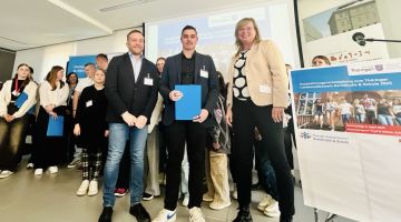 Im Erinnerungsort Topf & Söhne würdigte Kultusminister Christian Tischner landesweite Demokratieprojekte.