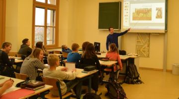 Valentin Herrmann begeisterte mit seiner Seminarfacharbeit die Schüler der 7d und Frau Lauer. Er wählte ein Thema, das geradezu perfekt in den Geschichtsunterricht passte.