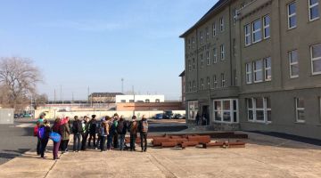 Am Mittwoch, dem 25.03.2015, traf sich die Klasse 9e gegen 8:20 Uhr am Hauptbahnhof in Gotha um mit dem Zug nach Erfurt zu fahren und den Erinnerungsort Topf & Söhne zu besuchen.