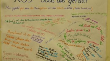 Schüler der 5a haben auf einem Plakat zusammengetragen, was ihnen an unserer Schule gefällt.