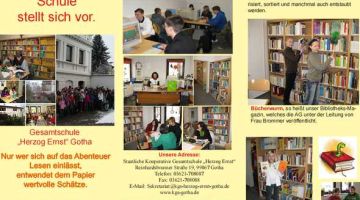 Die Schulbibliothek stellt sich und ihre Aktivitäten in einem Flyer vor.