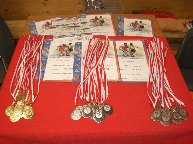Wir sind bei 1. Thüringer Gesamtschulcup Sieger geworden. Am 6. Oktober 2009 fand unter der Schirmherrschaft des Staatssekretärs des Thüringer Kultusministeriums Kjell Eberhardt der 1. Thüringer Gesamtschul-Fußballcup in Gotha statt.