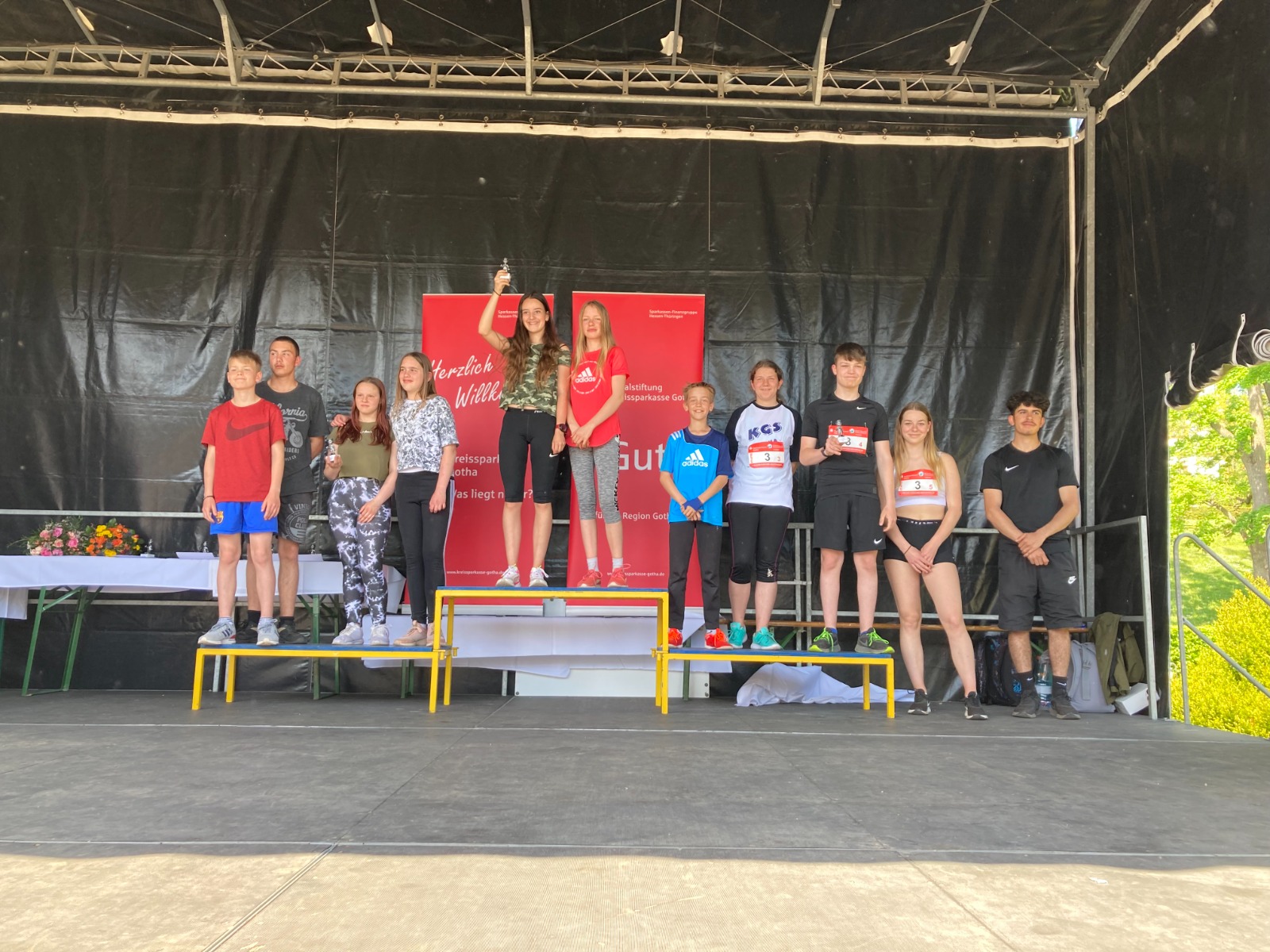 Mit 23 Schülerinnen und Schülern beteiligte sich die KGS „Herzog Ernst“ am diesjährigen Schlossparklauf. Nach zwei Jahren Coronapause durfte wieder durch den Gothaer Park rund um Schloss Friedenstein gerannt werden. Celina Will und Victoria Keksel konnten in ihren Altersklassen jeweils den 1 Platz belegen. Fadi Mahdi Roni, Mohammad Abou Aicheh, Jette Sprinz, Maja Felix, Jakob Dietz und Ludwig Langer wurden jeweils Zweite in den Altersklassenläufen. Lea Neuber platzierte sich auf Platz drei. Im hart umkämpften Schulstaffellauf belegt die Staffel der Herzog- Ernst-Schule einen hervorragenden zweiten Platz. Den Sieg holte sich das Gustav-Freitag-Gymnasium. Trotz etwas geringerer Teilnehmerzahlen als in den vorangegangenen Jahren, belegten wir Rang drei der teilnehmerstärksten Schulen und einen tollen zweiten Platz im Schulwettbewerb. Herzlichen Glückwunsch an unsere Läufer.