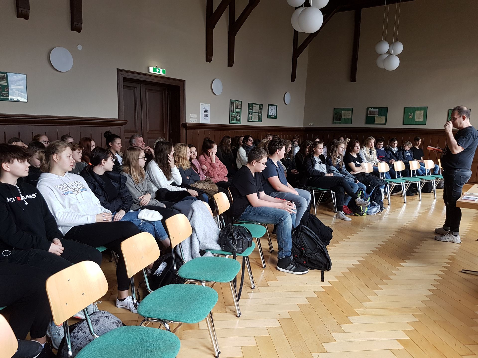 Am Donnerstag, dem 28.11.2019, besuchten wir, alle Gymnasialklassen der 9. Jahrgangsstufe unserer Schule, eine sehr interessante Buchlesung im Big Palais.