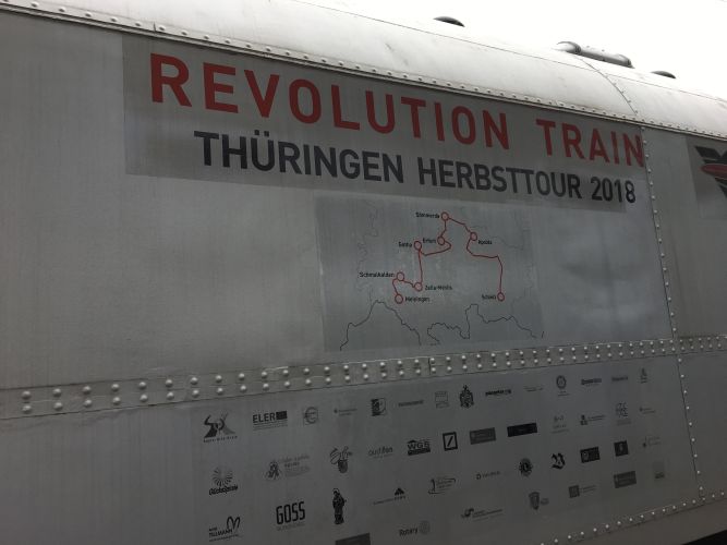 In der Zeit vom 12.09. bis 14.09. hatte die Stadt Gotha das Glück, den Revolution Train auf dem Gothaer Bahnhof begrüßen zu dürfen. Es handelt sich hierbei um ein tschechisches Projekt zur Drogenprävention. Das Besondere ist hierbei, dass sich die Besucher in den Waggons auf ganz eindrucksvolle Art und Weise mit dem Thema Drogen auseinandersetzen und auf allen Sinnesebenen mit den Gefahren konfrontiert werden.