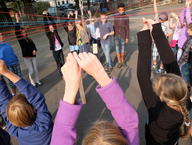 Gemeinsam mit ihren Klassenlehrer/inne/n erkundeten sie am ersten Schultag das Schulgelände, bekamen ihre neuen Schulbücher und lernten unsere Bibliothek kennen. An den nächsten drei Tagen fanden verschiedene Aktionen statt. So unterzogen sich alle Klassen einem zweistündigem Teamtraining. Die hier gestellten Aufgaben waren nur zu lösen, wenn alle mitdachten und gemeinsam handelten.