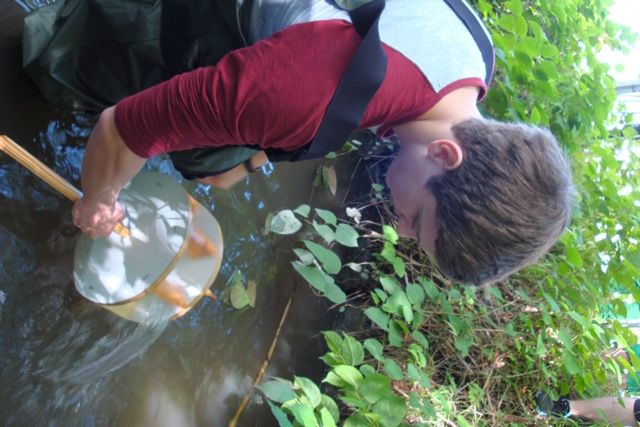 Anschließend stiegen einige Mutige selbst in das Gewässer, wo Marius Henniger anhand eines Modells die Funktionsweise von Mühlrädern vorführte und selbst gebastelte Wasserräder ausprobiert werden konnten, bevor der Abschlag an der Leinamühle in der Reinhardsbrunner Straße erkundet wurde.