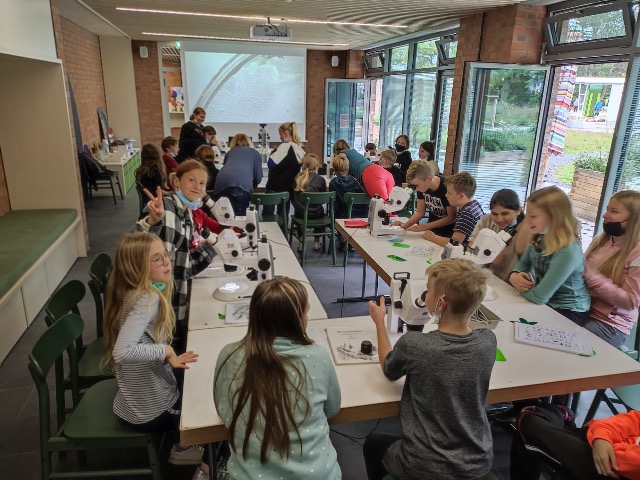 Am Freitag, den 24.09. hatten die Schülerinnen und Schüler der Klassen 6c und 6e die Gelegenheit, das BUGA-Gelände Petersberg und egapark zu erkunden und an einem der vielen Veranstaltungsprogramme teilzunehmen. Die Klasse 6e nahm an einem Programm zum Thema Wildbienen teil. Neben der Vorstellung vieler Wildbienenarten, erhielt die Lerngruppe einen Überblick zur Ernährung und den Nahrungsquellen der Insekten. Die Klasse 6c erprobte den Workshop „Artenvielfalt im Gewässer“. Hierbei erhielten alle die Möglichkeit, verschiedene Wasserlebewesen unter dem Mikroskop zu inspizieren und im Anschluss gegenseitig in einem Steckbrief vorzustellen.