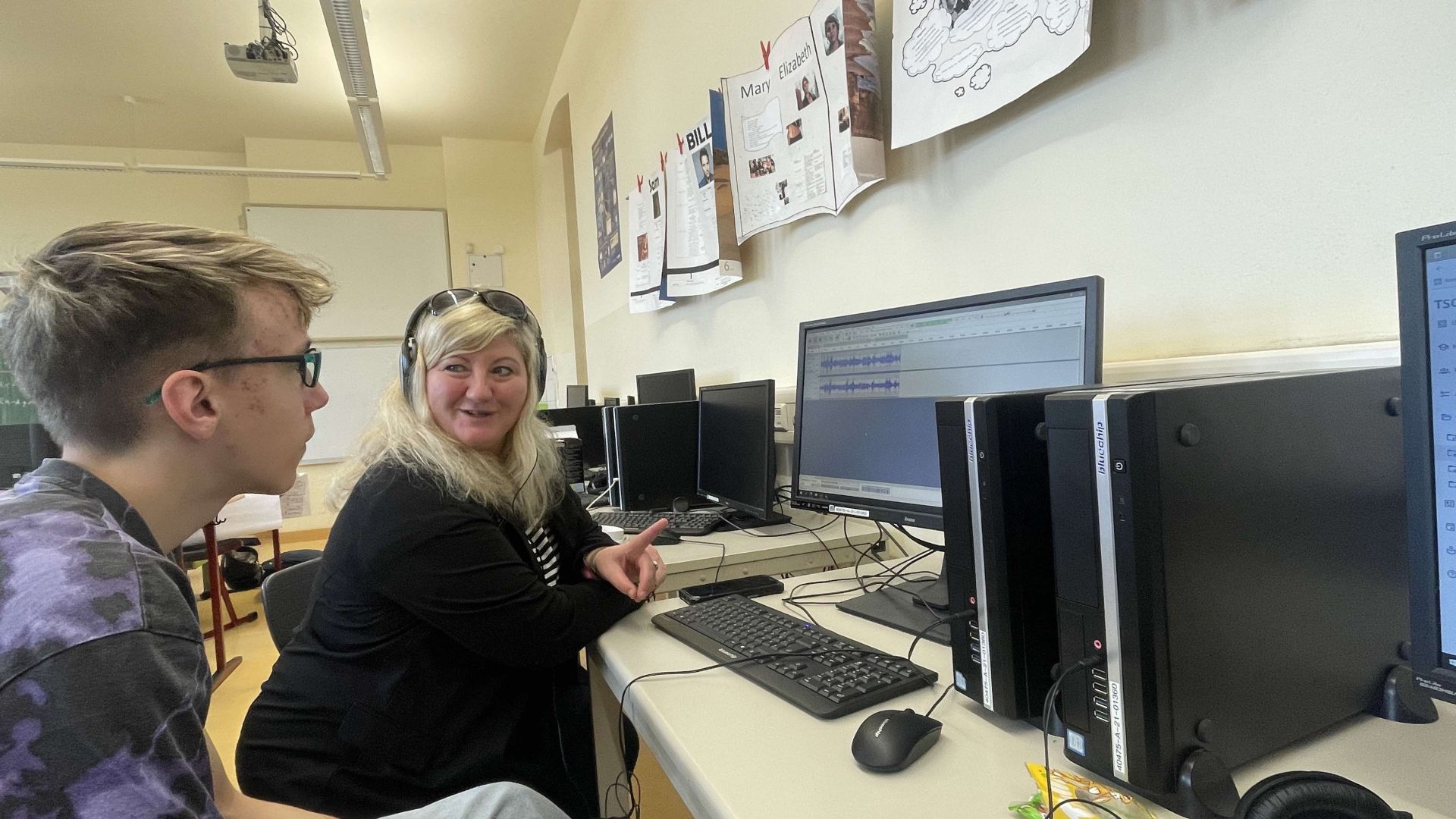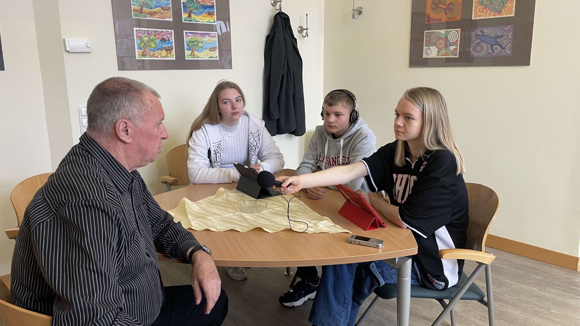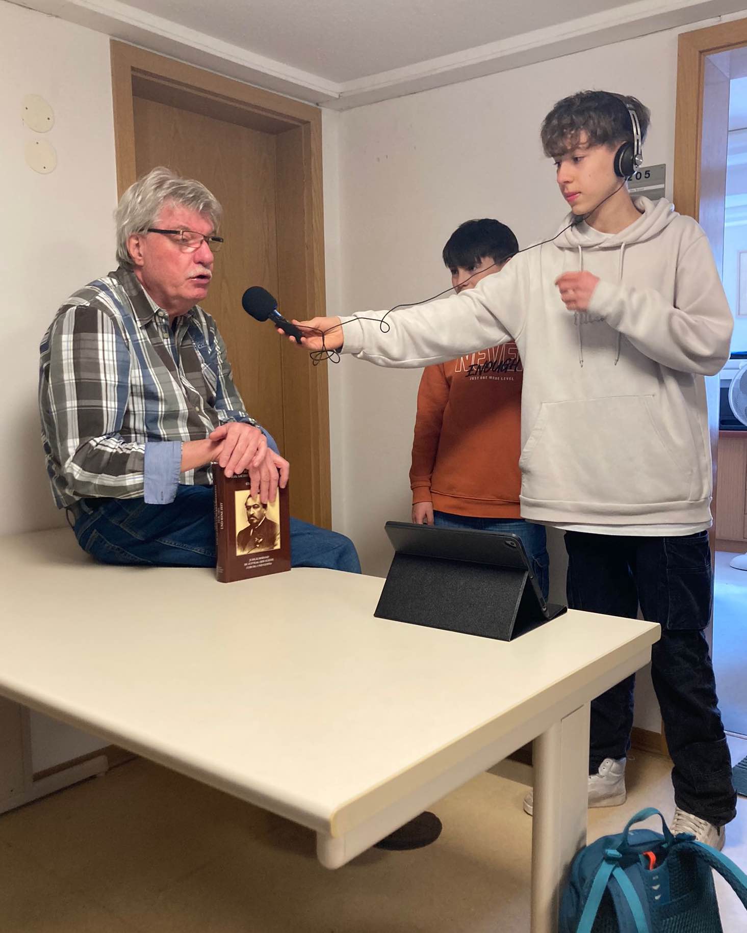 Sehr interessant, mega spannend aber auch unglaublich arbeitsintensiv fanden viele Schülerinnen und Schüler der Klasse 8e die Hör-Forscher Projekttage zum Thema „Erinnerungen“ in der Woche vor den Osterferien. Die Achtklässler begaben sich vom 20. bis 22. März auf Spurensuche zum Leben in der DDR und zur Schulgeschichte. Zusammen mit den Medienexpertinnen Franziska Klemm und Laura Gieß von der Stiftung Zuhören erarbeiteten die Schülerinnen und Schüler Interviews, befragten Zeitzeugen und bearbeiteten die erstellten Audiodateien. Herr Rudolf Nicolai erinnerte sich für die Gruppe an die Umbrüche 1989 und die Gothaer Protestbewegung zu dieser Zeit. Zusammen mit den Jugendlichen begab er sich auf eine Erinnerungstour durch Gotha von der Augustinerkirche bis hin zur ehemaligen Kreisdienststelle des Ministeriums für Staatssicherheit der DDR in der Helenenstraße. Auf dem Erinnerungsweg traf die Gruppe auf Ute und Ingo Horn, die von ihrer Enkelin Alia Bauer zum Leben in der DDR und ihren Erinnerungen an den Mauerfall befragt wurden. Auch Herr Mathias Wienecke hatte sich bereiterklärt, sich für die Achtklässler an die Geschehnisse um 1989 in Gotha zu erinnern. Sein Appell an die Gruppe: Seid mutig und mischt euch ein! Herr Breitsprecher und viele weitere Lehrerinnen und Lehrer der Schule beteiligten sich an Interviews zur Schulgeschichte. Die Suche nach Erinnerungen zur KGS führte die Gruppe auf den Dachboden der Schule, wo Herr Wiegand allerhand zur Schulgeschichte und auch das Leben in der DDR zu berichten wusste. Über den Namensträger der Schule, Herzog Ernst II., informierte sich die Klasse beim Gothaer Stadthistoriker Matthias Wenzel. Die Verarbeitung der vielen Audiodateien zu Hörprodukten wird am 16. April im Tonstudio des Wartburg-Radios in Eisenach erfolgen. Die Präsentation der fertigen Hörstücke ist zu unserem Sommerfest am 31. Mai geplant. Die Klasse 8e bedankt sich recht herzlich bei Franziska Klemm und Laura Gieß, Herrn Nicolai, Herrn Wienecke, Frau und Herrn Horn, Herrn Wenzel und Herrn Wiegand für ihre Geduld und Offenheit.