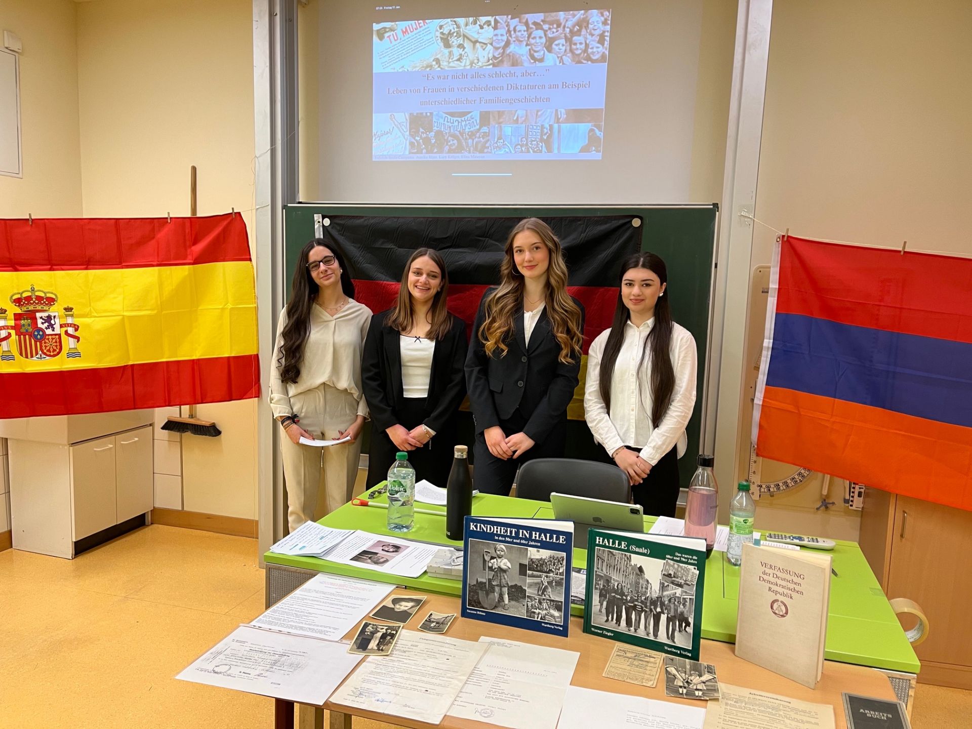 Auch viele der anderen Vorträge zeigten eine hohe Qualität und die große Bandbreite möglicher Themen für das mit Blick auf die Studienvorbereitung äußerst wichtige Seminarfach. Diese reichten von der Entsorgung von Fäkalien über die Präsenz von regionalem Obst und Gemüse in den Gothaer Supermärkten, Demenz, das Smart Home, Lehrersprache, Sport als Medizin, Armut in Gotha, Botolinum bis zur Zitadelle Petersberg. Vier Schülerinnen untersuchten anhand der spannenden Biografien ihrer Urgroß- bzw. Großmütter, wie Frauen in verschiedenen Diktaturen lebten – in Francos Spanien, in der Sowjetunion und in der DDR. Michael Albrecht, Julian Dehmel, Niklas Reiß, Joshua Sandow und Gina Trübenbach betraten lokalhistorisches Neuland und verglichen die Berichterstattung in der Gothaer Presse über den Herero-Aufstand 1904 in der Gothaer Lokalpresse und dessen Auswirkungen auf die deutsche Innenpolitik.