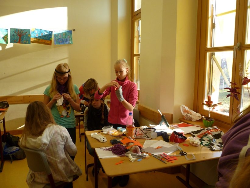 In Gruppenarbeit wurden die Fabeln analysiert, zu einem dramatischen Text umgearbeitet und die Akteure wurden gebastelt. So entstanden Löwen, Ameisen, Grillen, Störche oder Füchse als Handpuppen.