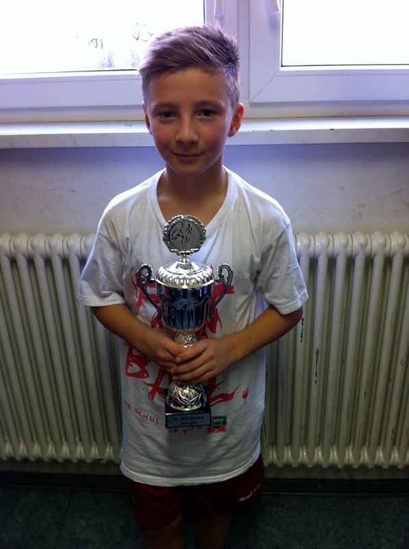 Im 3.Spiel erspielte die Mannschaft einen ungefährdeten 8:0 Sieg gegen die Regelschule Reyherschule. (Torschützen: Adrian, Jason 6 und Franz). Nun erfolgte ein echtes Endspiel gegen die Fußballer der Regelschule Warza die bis dato auch ungeschlagen im Turnierverlauf spielten. Das spannende Finale endete 1:1 und auf Grund der vielen Tore unseres Torschützenkönigs des Turniers gewannen die Fußballer der Gesamtschule verdient den Pokal.